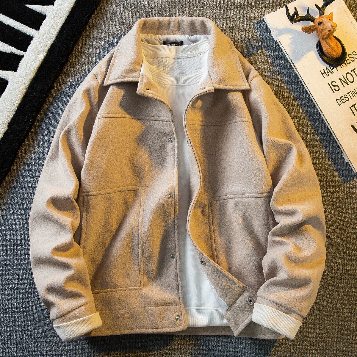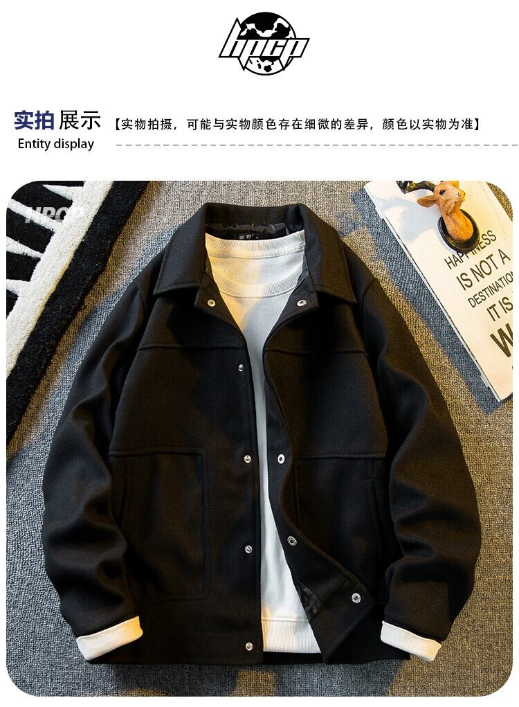 Hengpai トレンディなハンサムなハイエンドショートウールジャケットメンズ春秋メンズライト高級スリムラペルワークジャケット スプリング 春物 オータム 秋物 3381917085922094