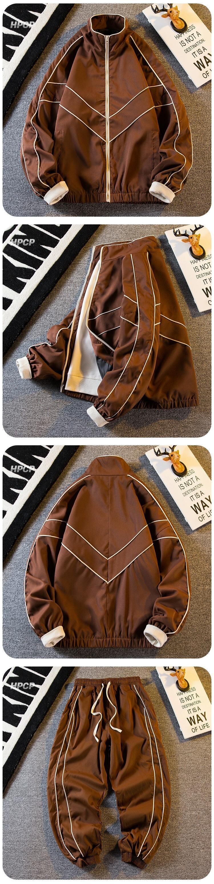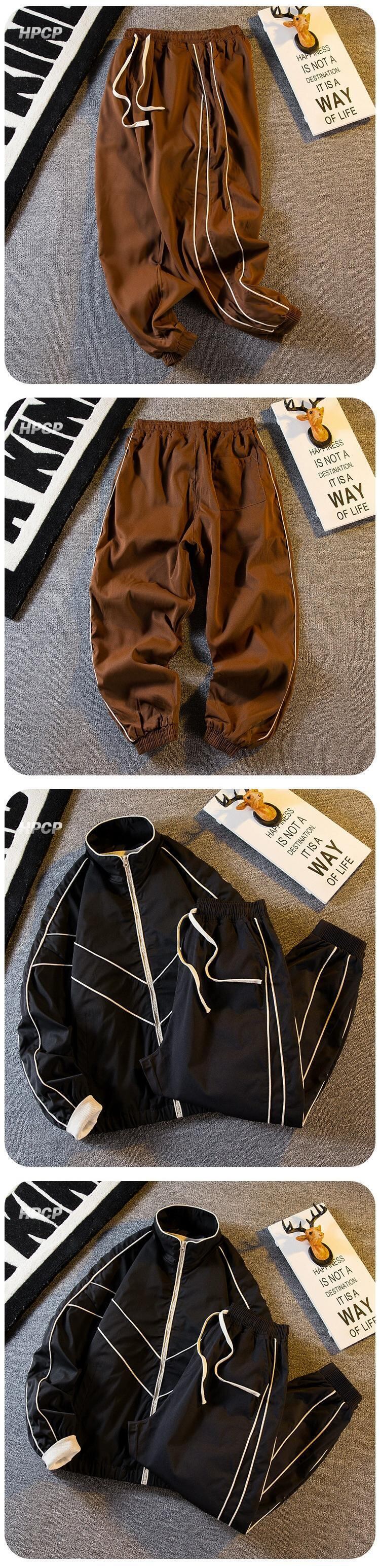 Hengpai トレンディな春と秋のトレンディなウェア スポーツウェア ジャケット メンズ スーツ ボーイズ ハンサム カジュアル マッチング 2 点セット スプリング 春物 オータム 秋物 3381969096238614