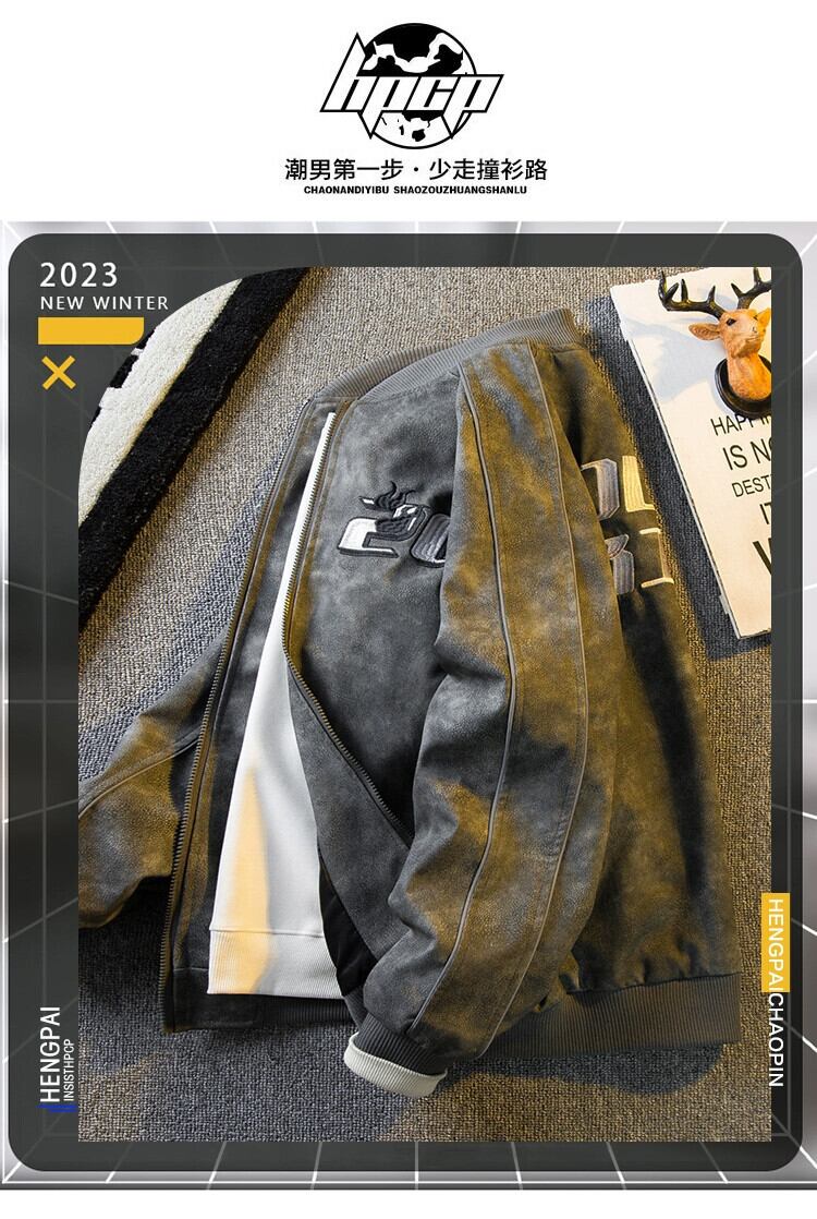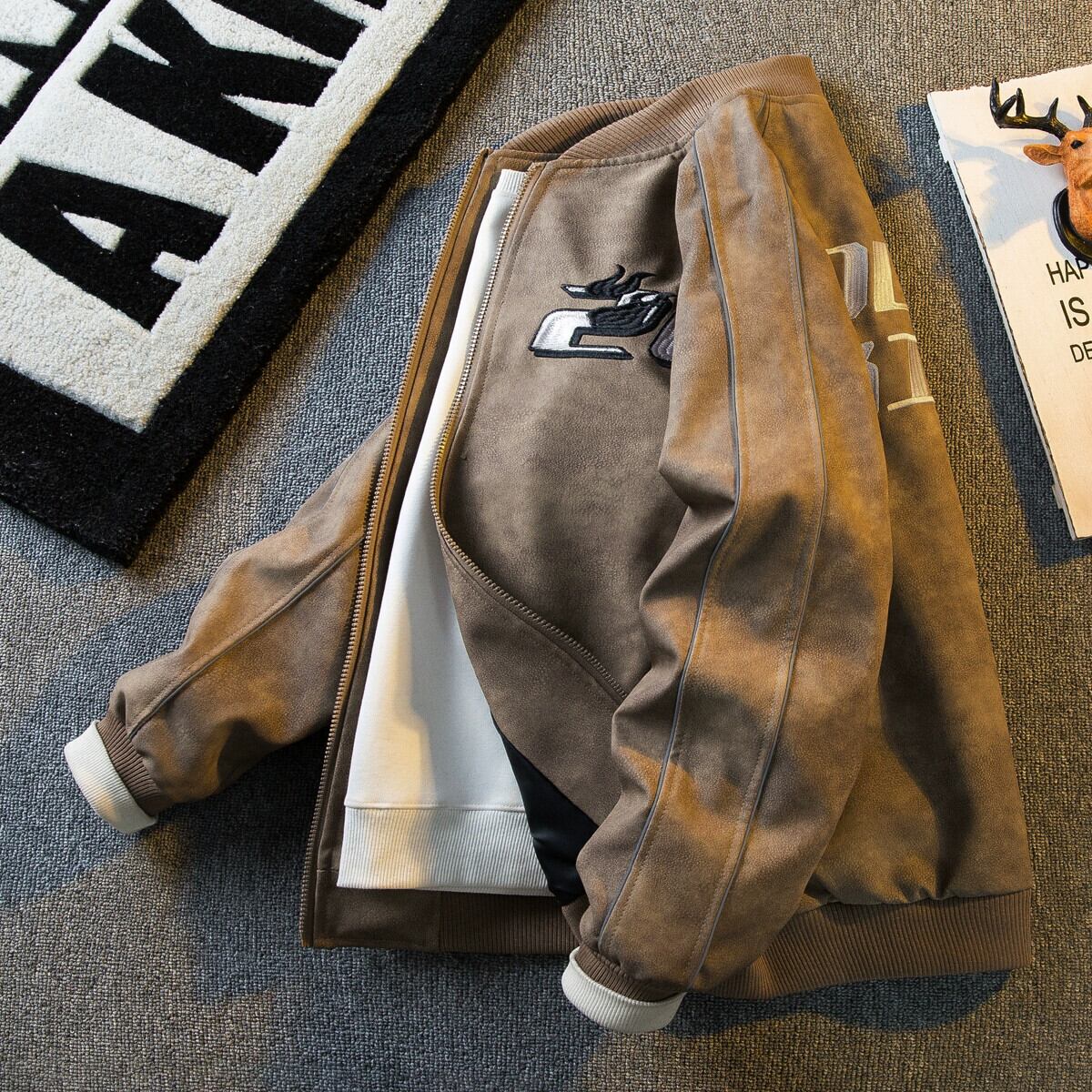 Hengpai トレンディなレトロな洗浄刺繍スエードジャケットメンズ春と秋のアメリカのファッションブランドハンサムなオートバイジャケットレザージャケット レッド スウェード スプリング 春物 オータム 秋物 33819576195600