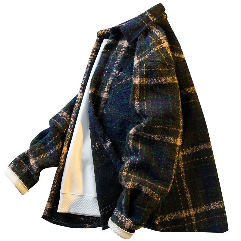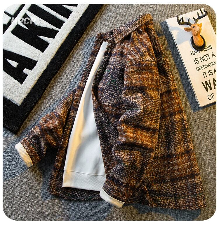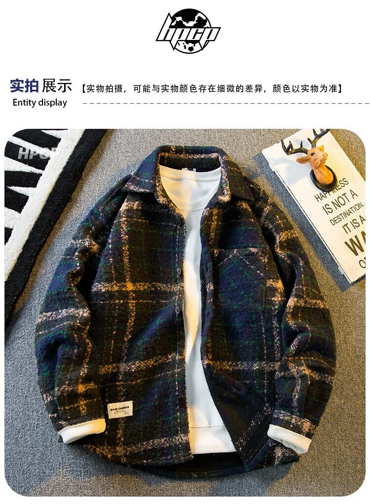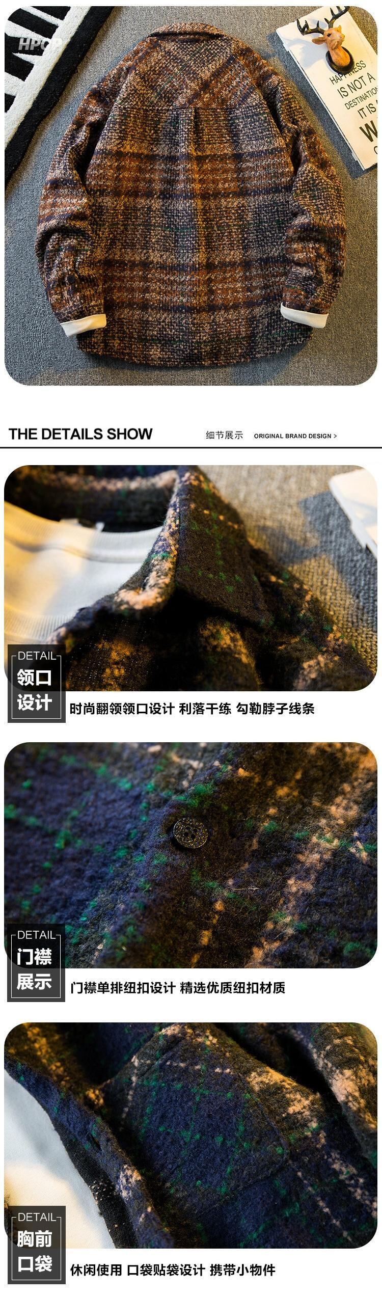 Hengpai トレンディな厚手のレトロなチェック柄シャツメンズ春と秋の新しいスタイルの小さな香りの良いウールのコートカジュアルラペルジャケット スプリング 春物 オータム 秋物 338194130273732