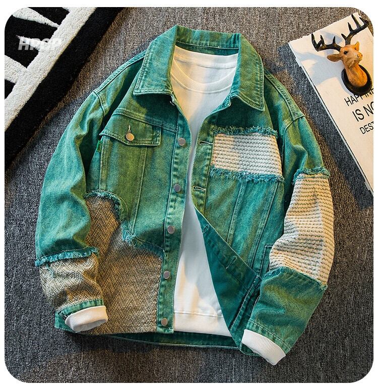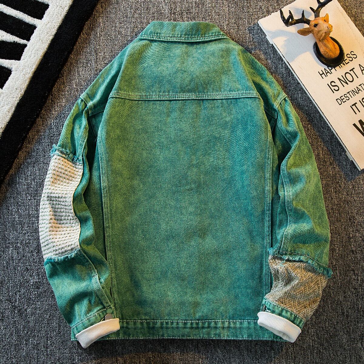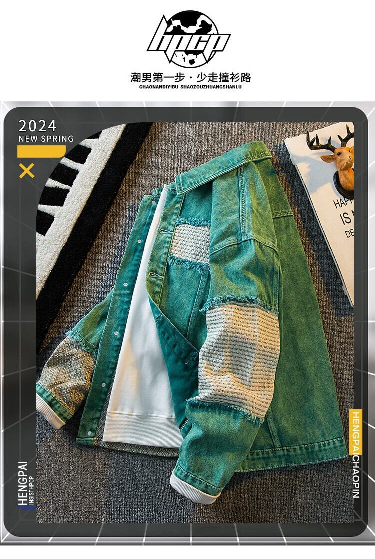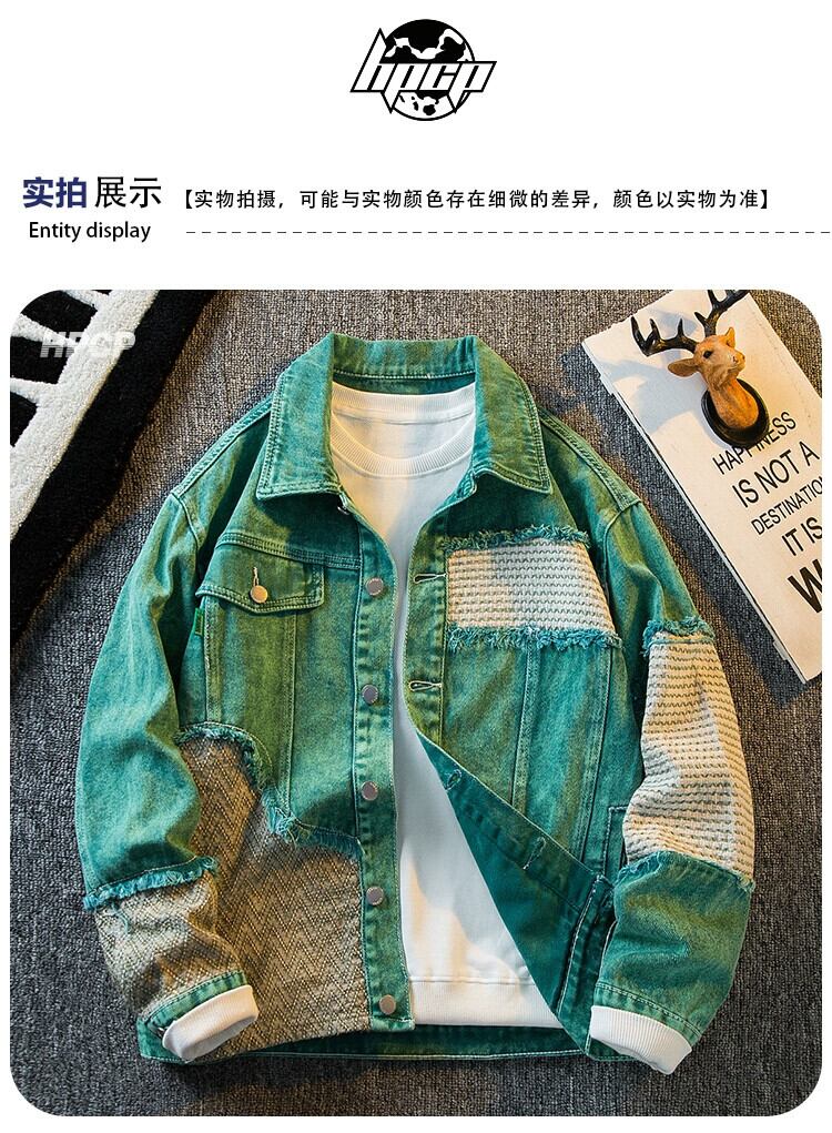 Hengpai トレンディな重工業ウォッシュスプライシングデニムジャケットメンズ春と秋の新作アメリカンレトロデザインカジュアルジャケット スプリング 春物 オータム 秋物 3381945157523070