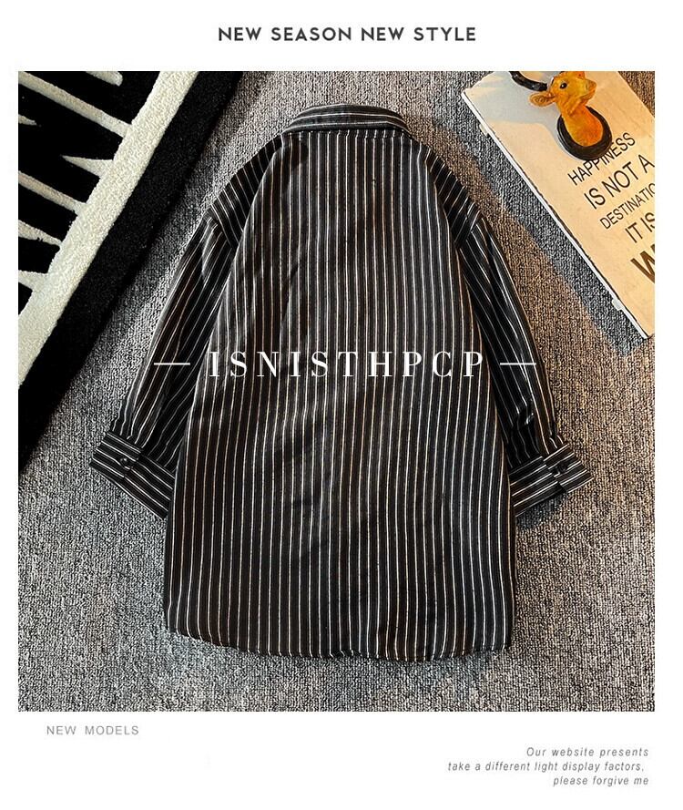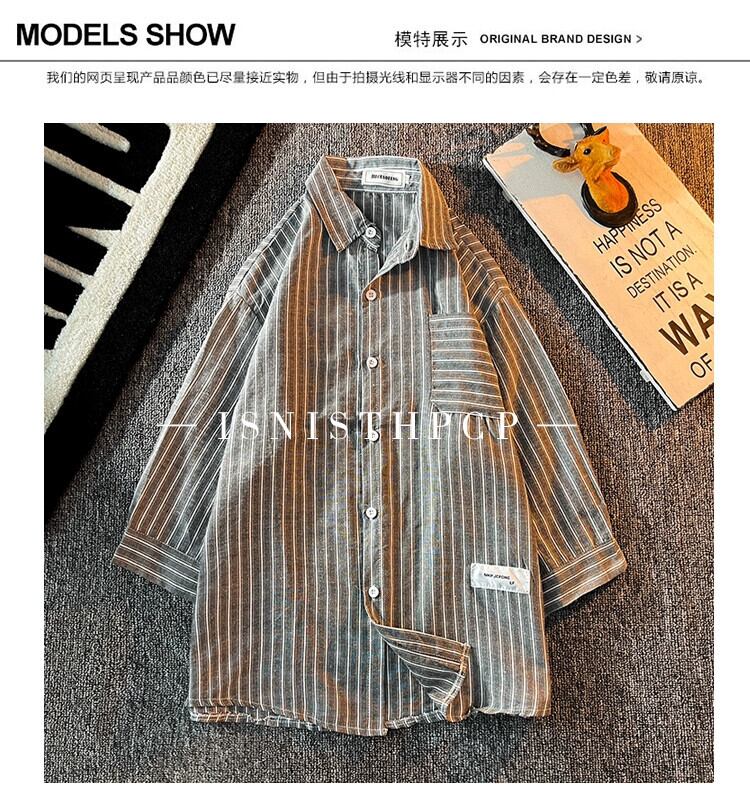 七分袖シャツ メンズ ストライプ ハイエンド トレンド ブランド イン 夏 香港風 ゆったり カジュアル 半袖 シャツ ジャケット トレンド M サマー 夏物 338191153097910