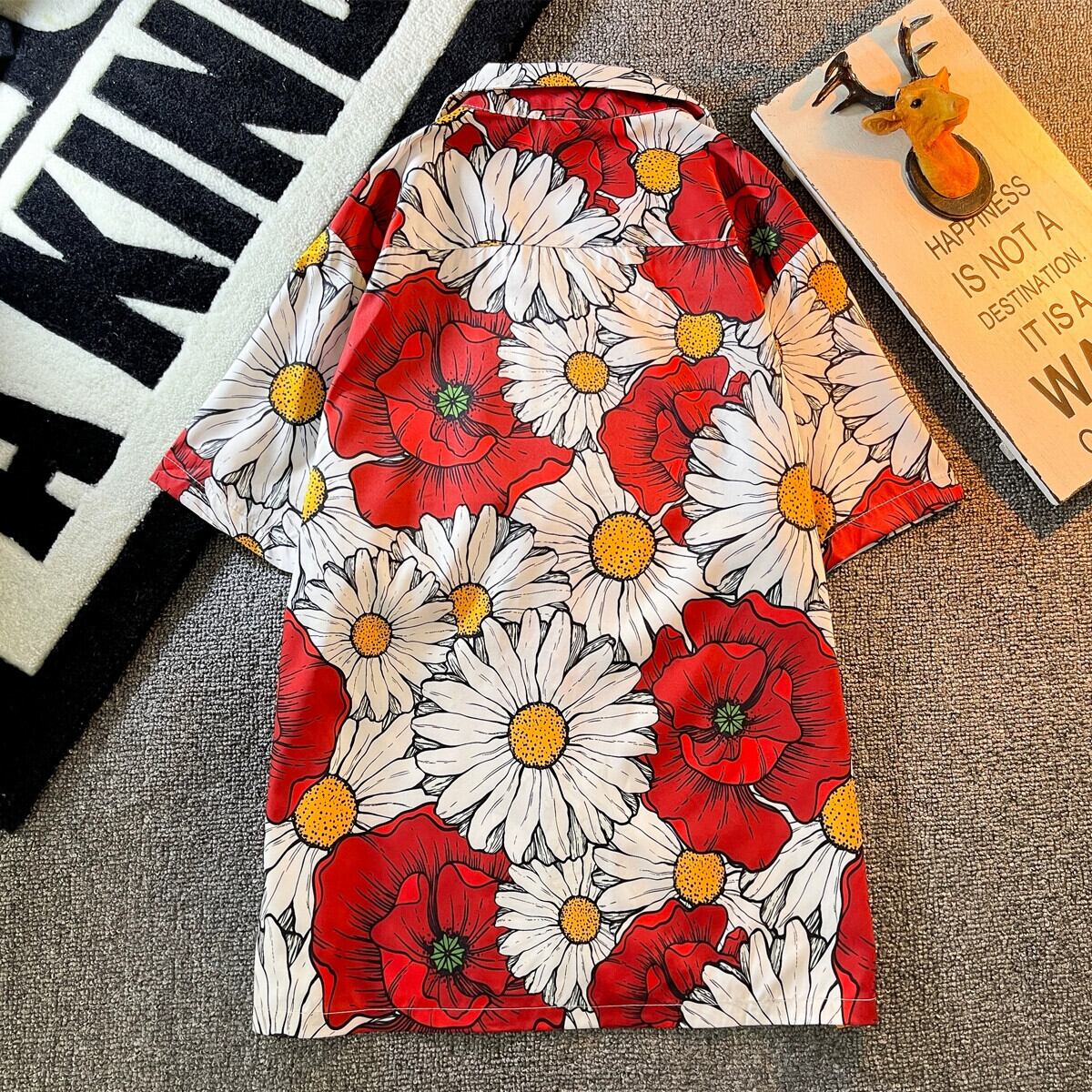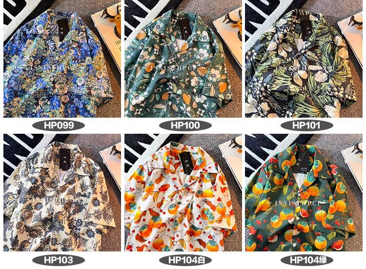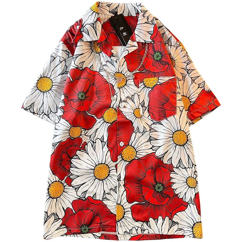 キューバンカラーシャツメンズ半袖レトロ香港スタイルイントレンディブランドハンサムルーズカップル半袖ハワイアンフラワーシャツK フラワーデザイン 338198168893052