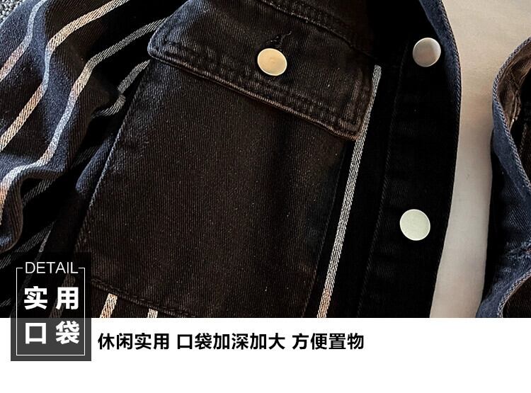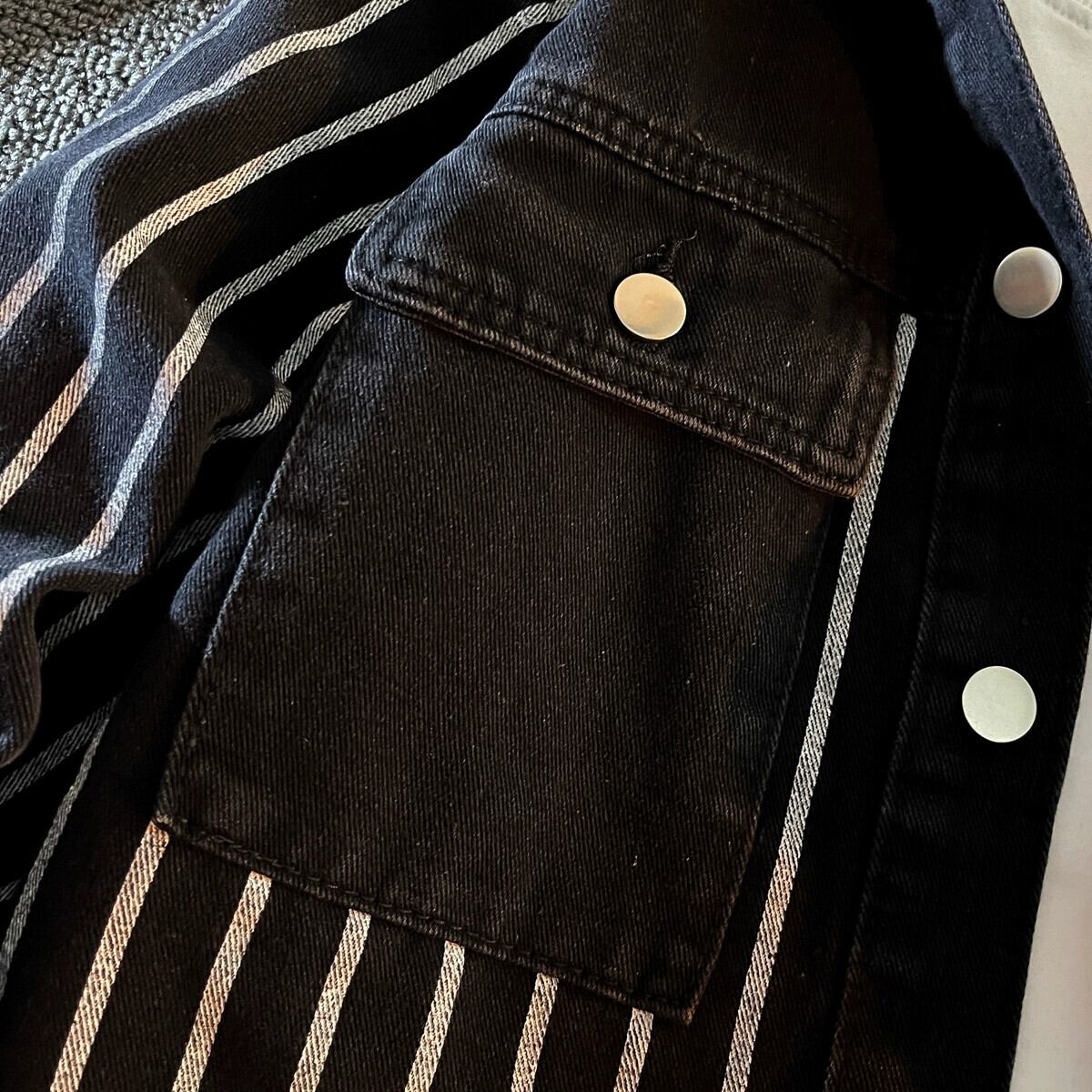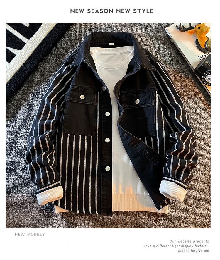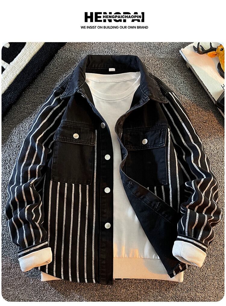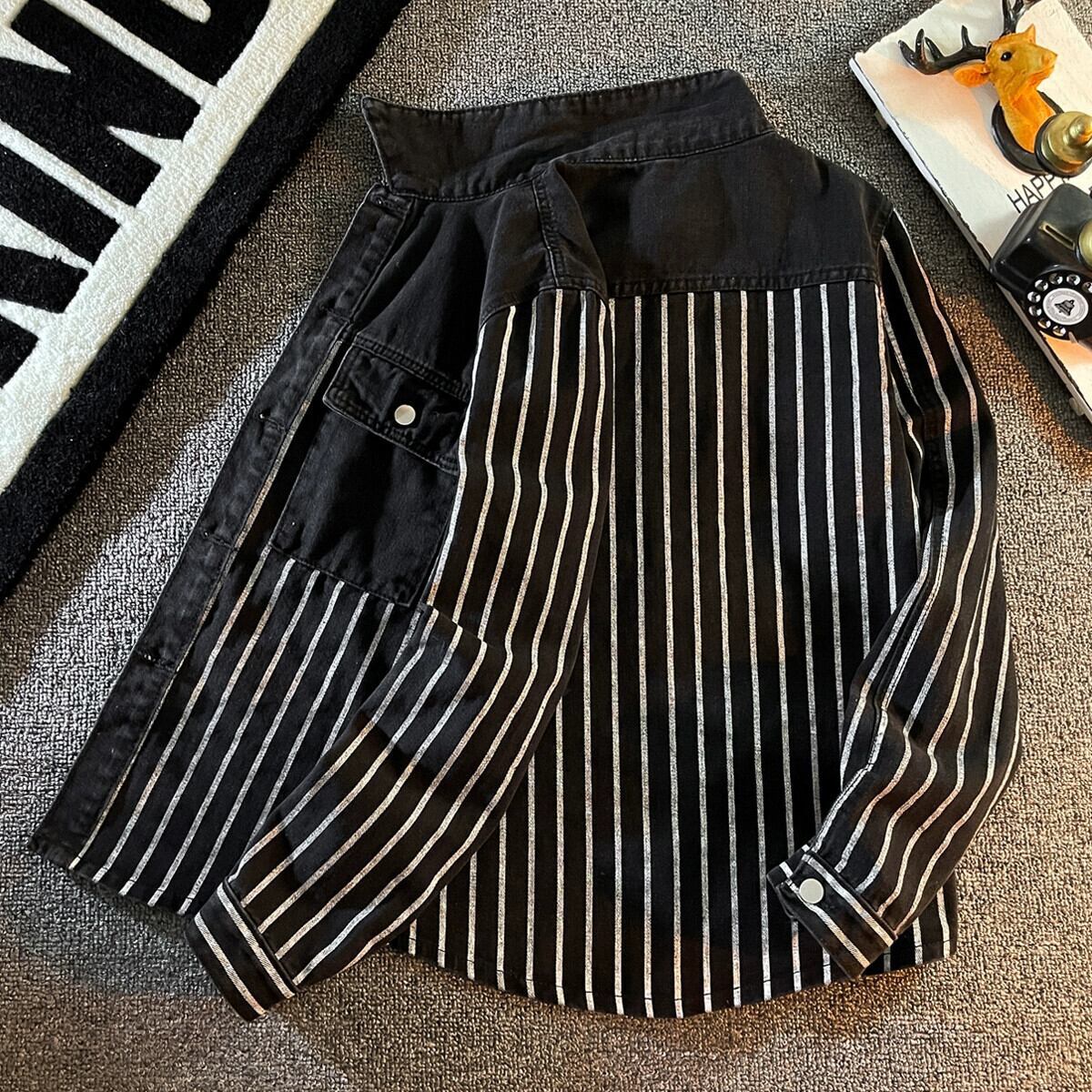 トレンドデザインのメンズ高級長袖デニムストライプシャツ ニッチトレンドブランドワークシャツジャケット M ロング 3381932952137802