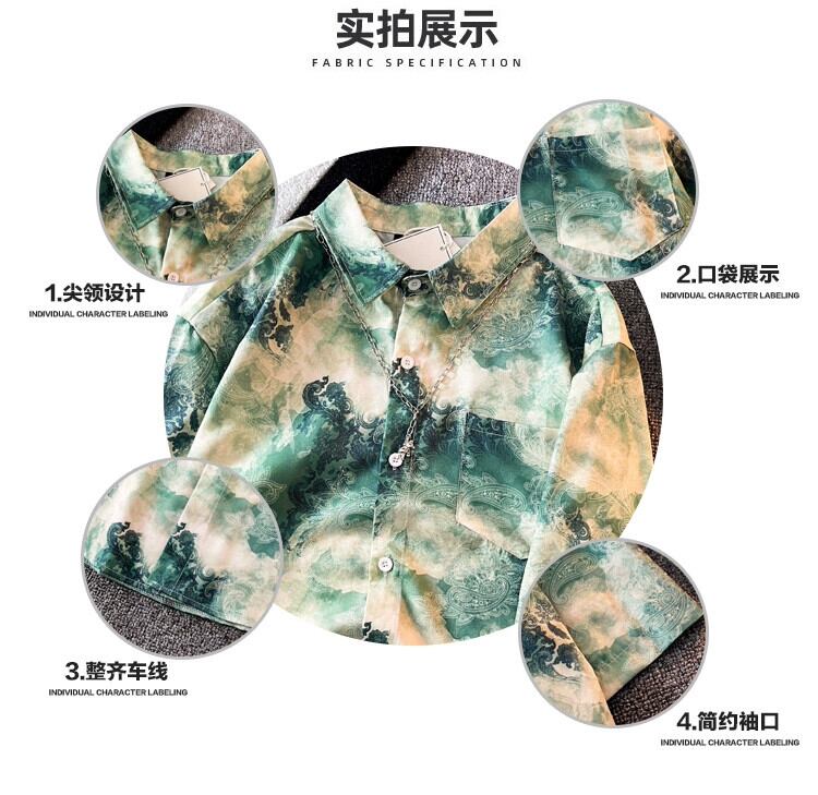 全国トレンドレトロインファッションブランドカシューフラワーデザインニッチ半袖シャツメンズ夏アイスシルク高級シャツR サマー 夏物 3381978664095822
