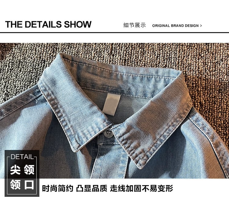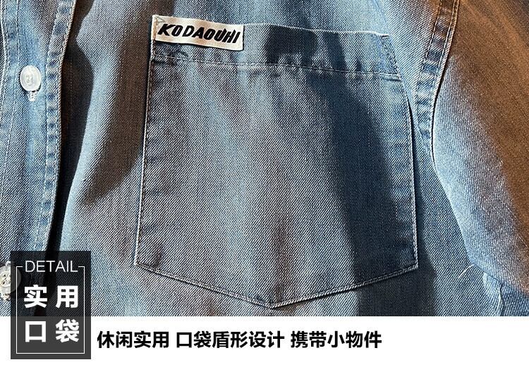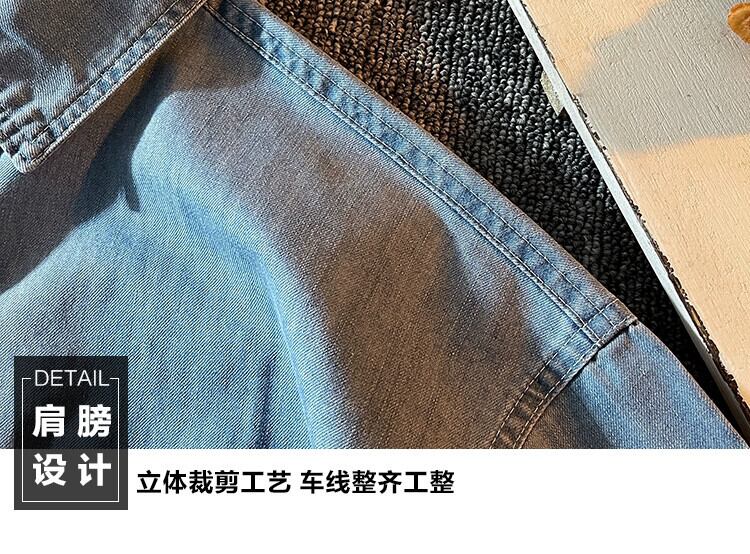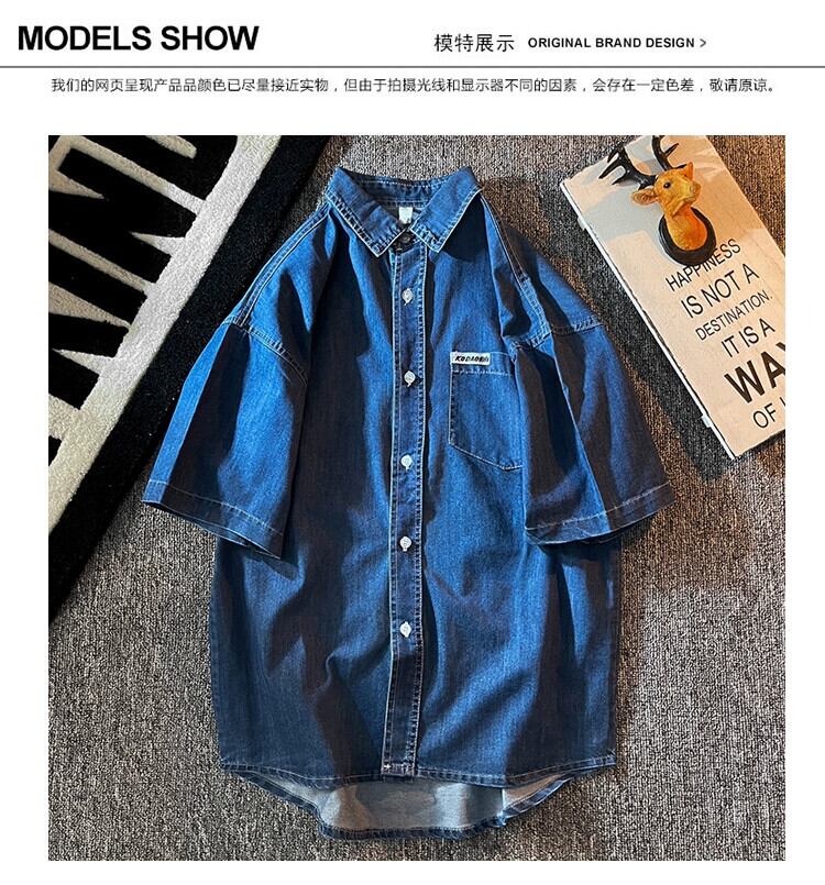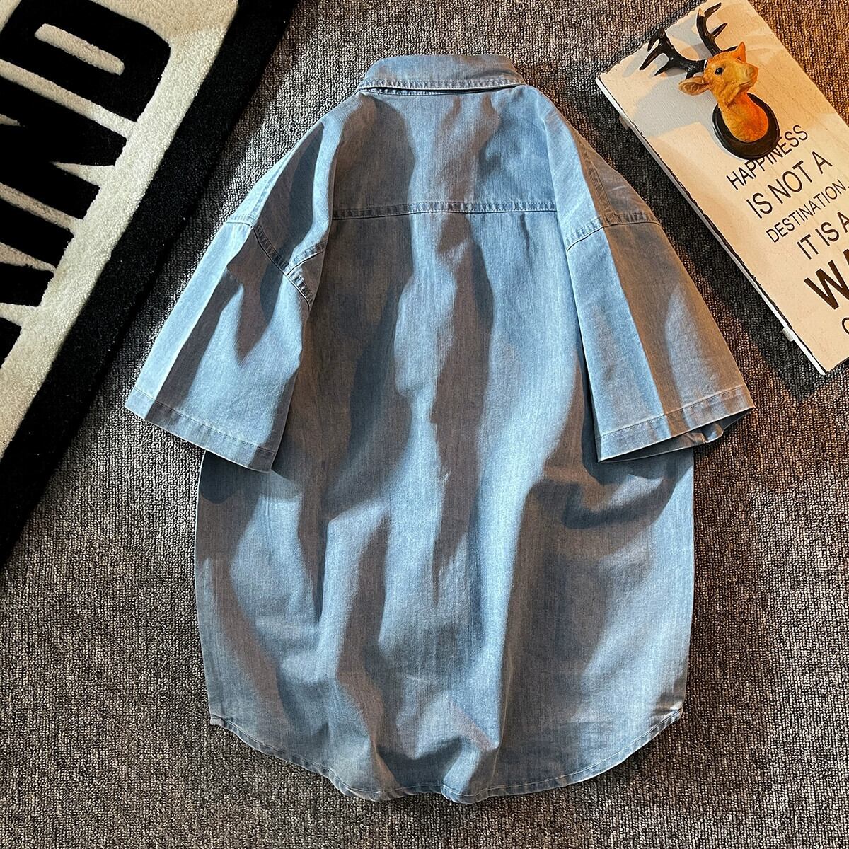 デニムシャツ メンズ 薄手 夏 半袖シャツ デザイン ニッチ トレンディ ブランド ワークウェア ルーズ カジュアル ジャケット サマー 夏物 3381969196183002