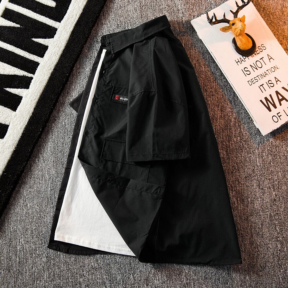 機能的なスタイルのワークシャツメンズダークサマー半袖トレンディなインハンサムなレトロトレンディなブランドルーズシャツE 夏物 3381956860104177