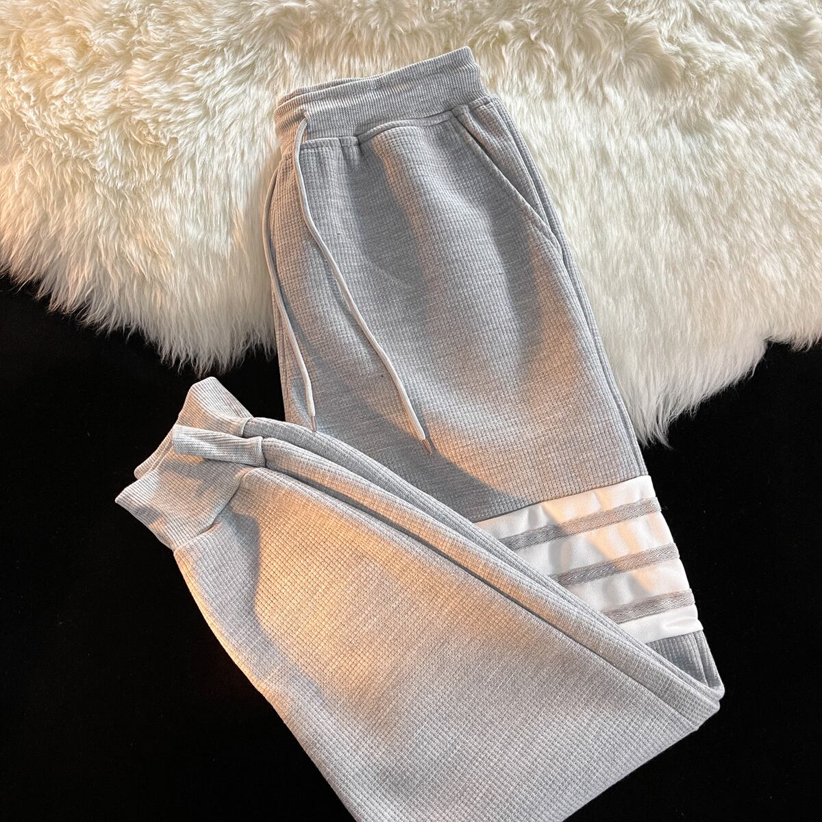 ワッフルスウェットパンツメンズトレンディブランドハイエンドカジュアルパンツメンズ秋冬ベルベット肥厚ルーズスポーツパンツメンズパンツ オータム 秋物 ウィンター 冬物 3381969621766424