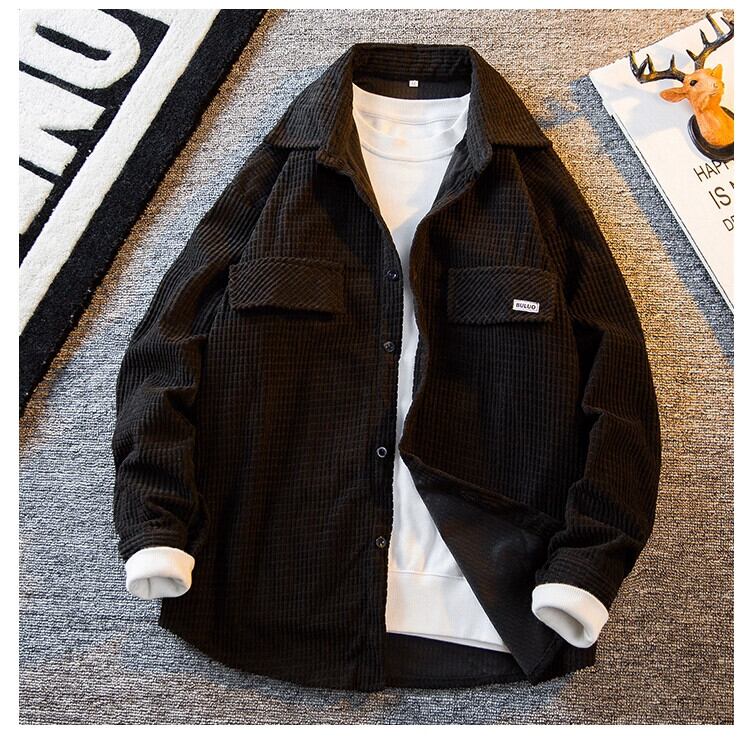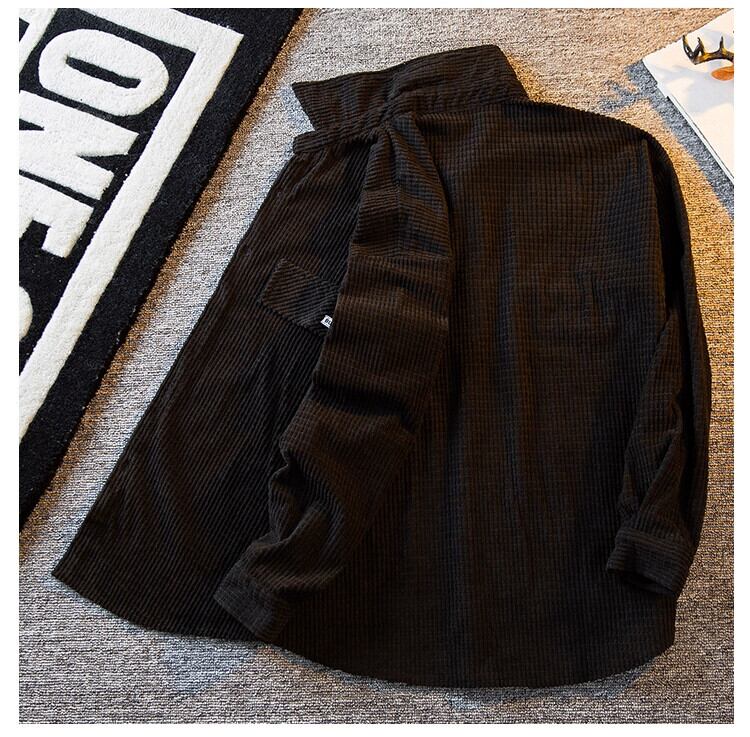 HPCP 黒コーデュロイシャツメンズ長袖春秋 ese ハイエンドハンサムワークシャツカジュアルジャケット ロング ブラック スプリング 春物 オータム 秋物 3381914764038239