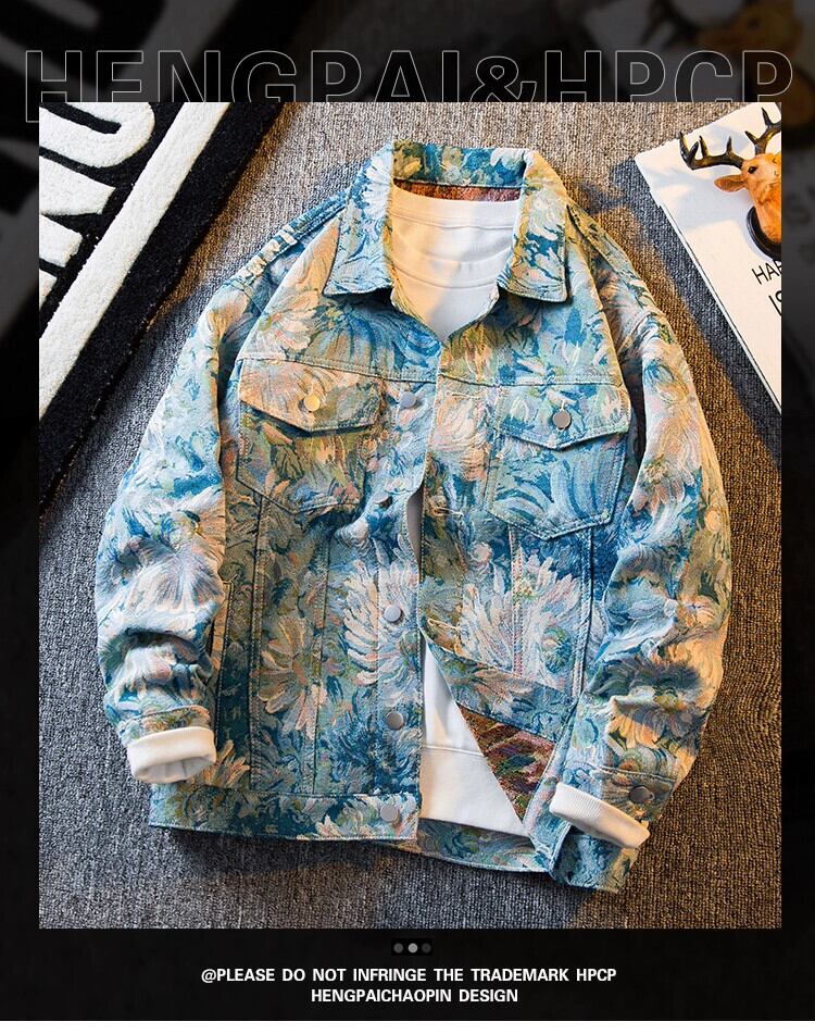 HPCP モネの油絵デニムジャケットメンズ春秋トレンディブランドハイエンドデザインニッチメンズカジュアルジャケット スプリング 春物 オータム 秋物 3381990558344666
