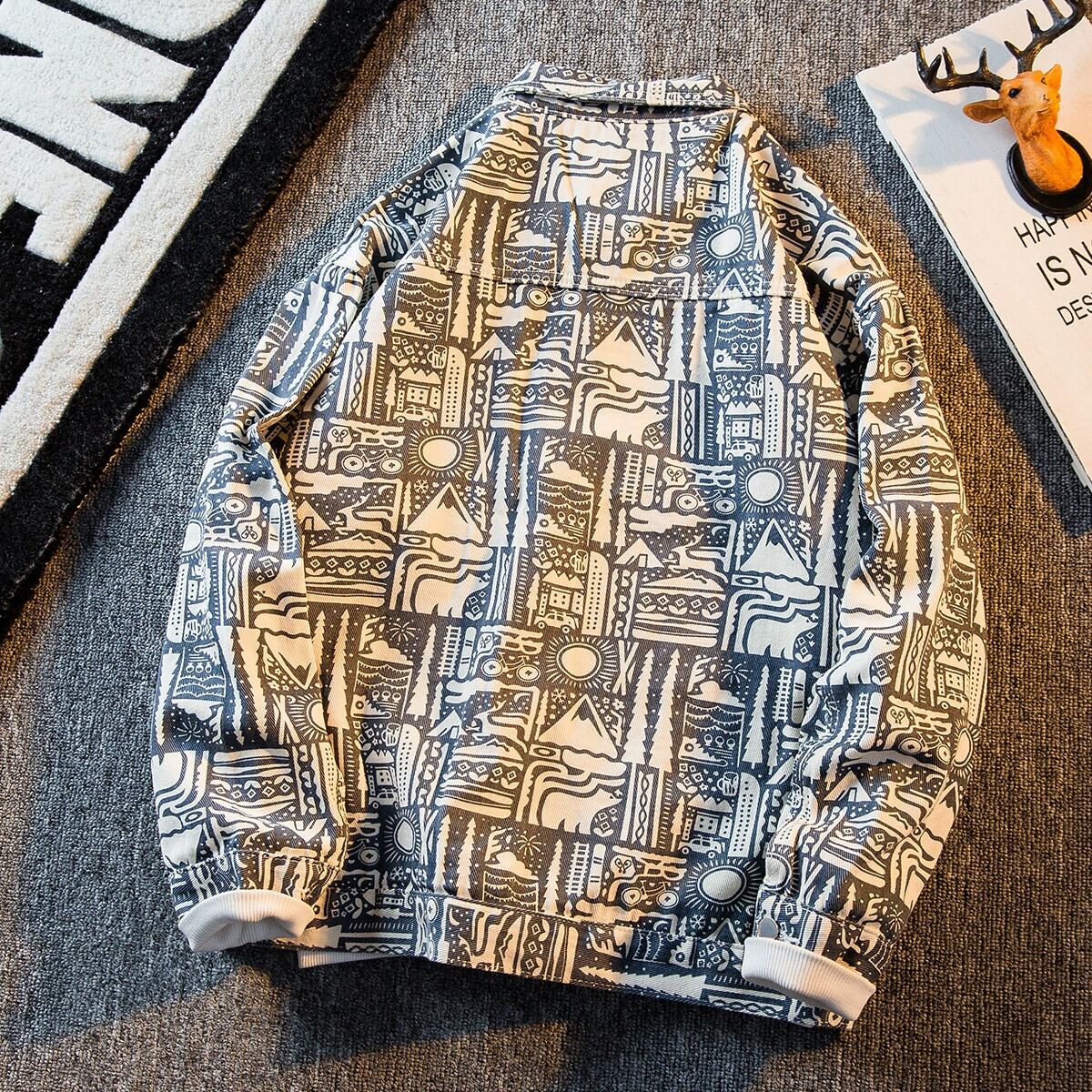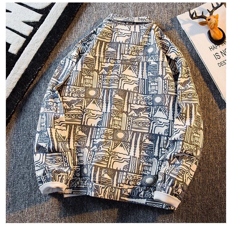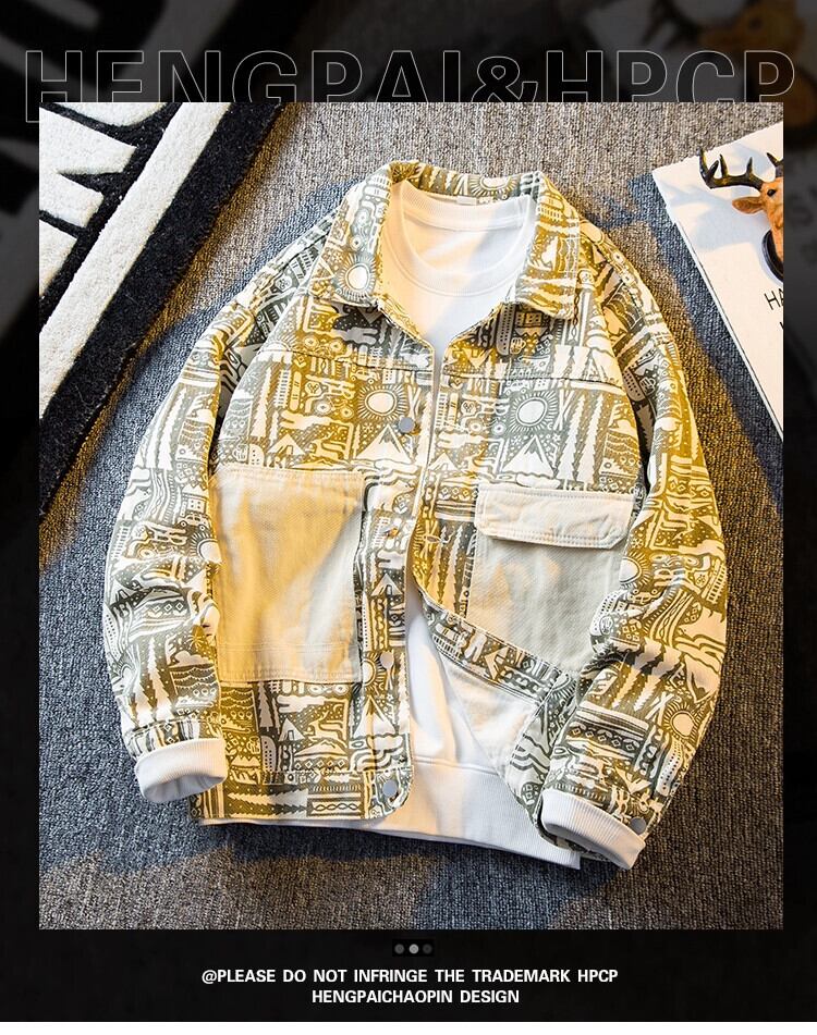 HPCP エスニックスタイルデニムジャケットメンズ春秋トレンディブランドハイエンドハンサムメンズレトロプリントワークジャケット スプリング 春物 オータム 秋物 3381987724527572