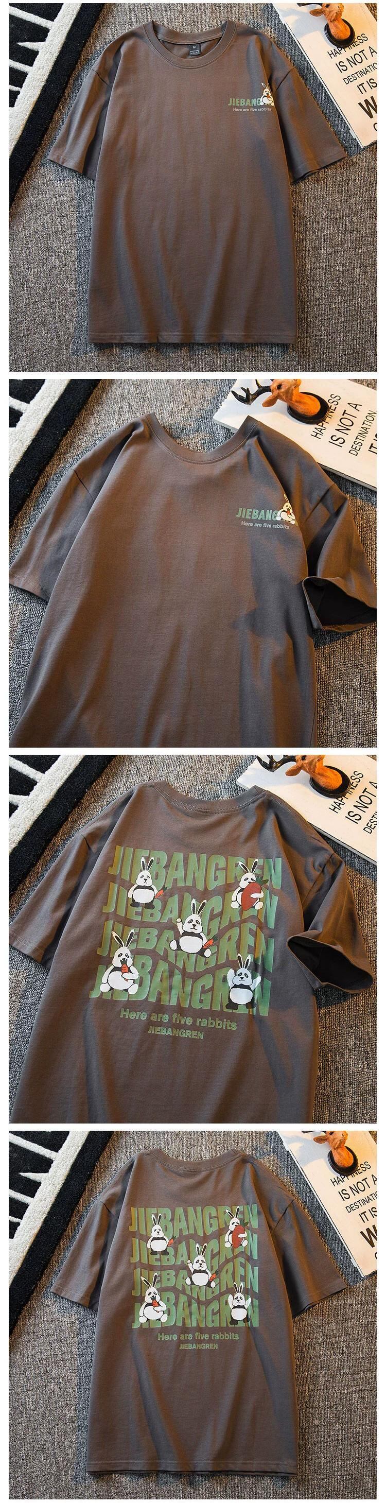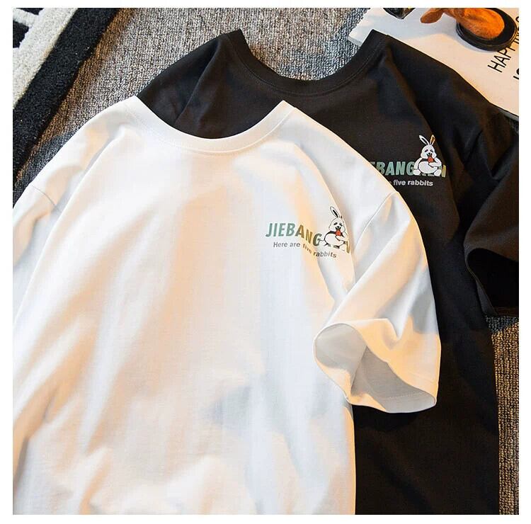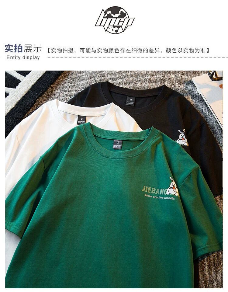 HPCP アメリカのトレンディなブランドウサギプリント半袖 T シャツメンズ夏ルーズラウンドネックトレンディな多目的綿ボトムシャツ コットン サマー 夏物 Oネック Tシャツ 338196171004020