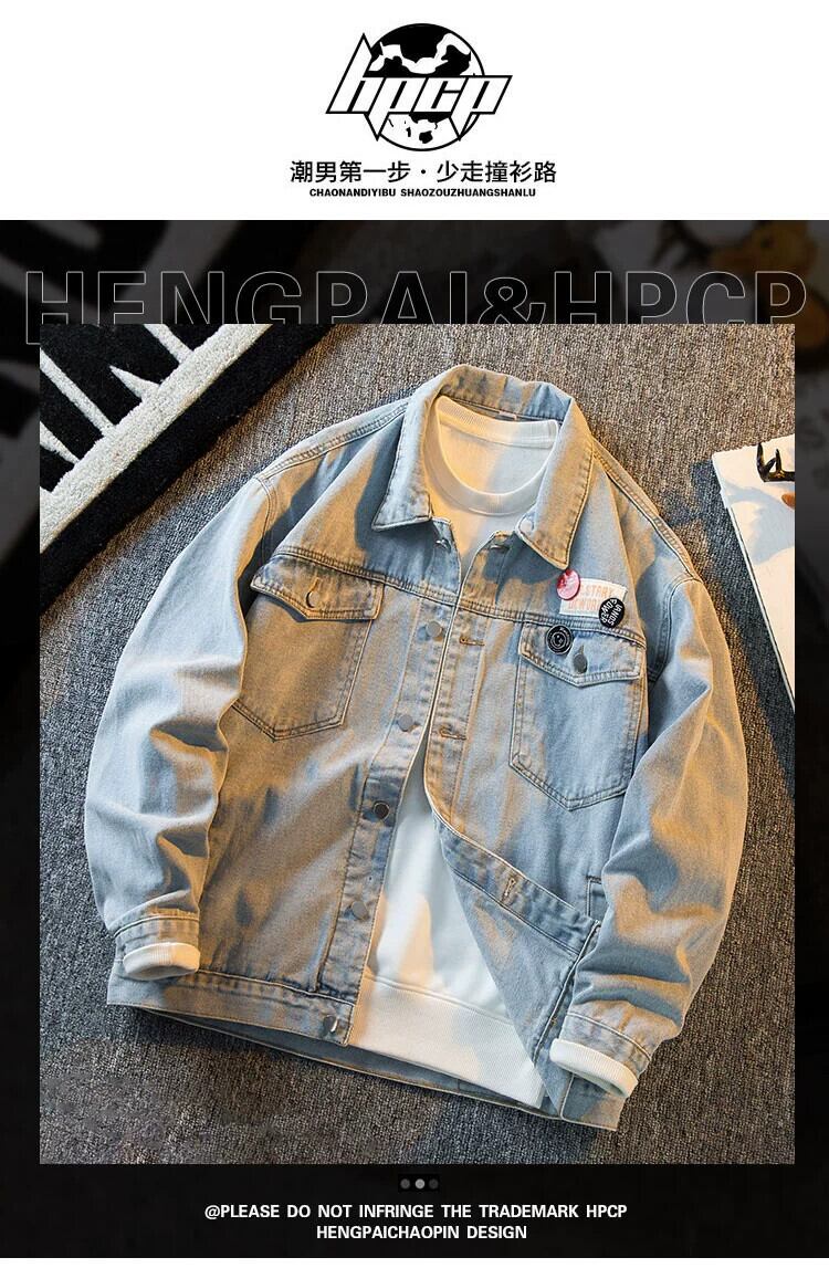 HPCP ese レトロバッジデニムジャケットメンズ春秋トレンディハイエンドトレンディブランドハンサムカジュアルカップルジャケット スプリング 春物 オータム 秋物 3381937239229570