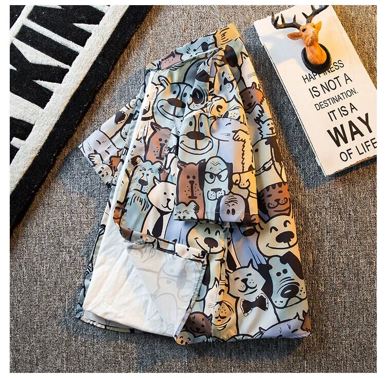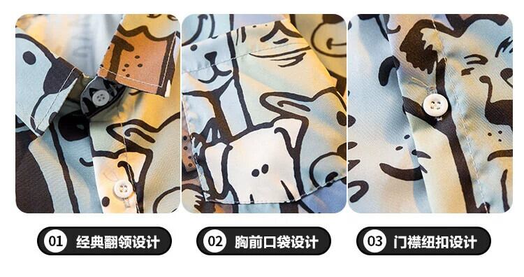 HPCP ese 漫画落書き半袖シャツメンズ夏薄い氷の絹ルーズカジュアルトレンディなカップルシャツ サマー 夏物 シルク 3381962938853526