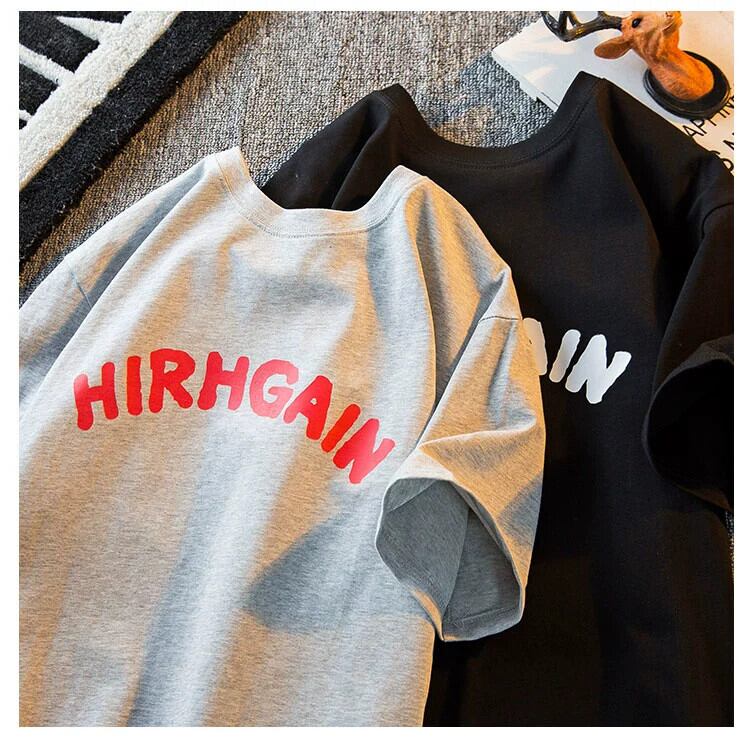 HPCP 厚手の綿半袖 Tシャツメンズ夏ラウンドネックトレンディなプリント文字半袖服ボトシャツ男性 コットン サマー 夏物 Oネック 3381946485952749