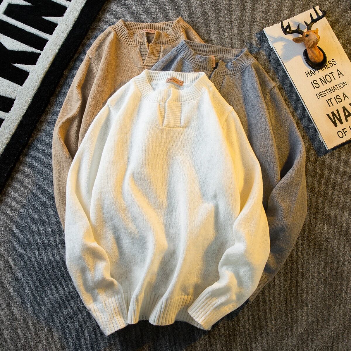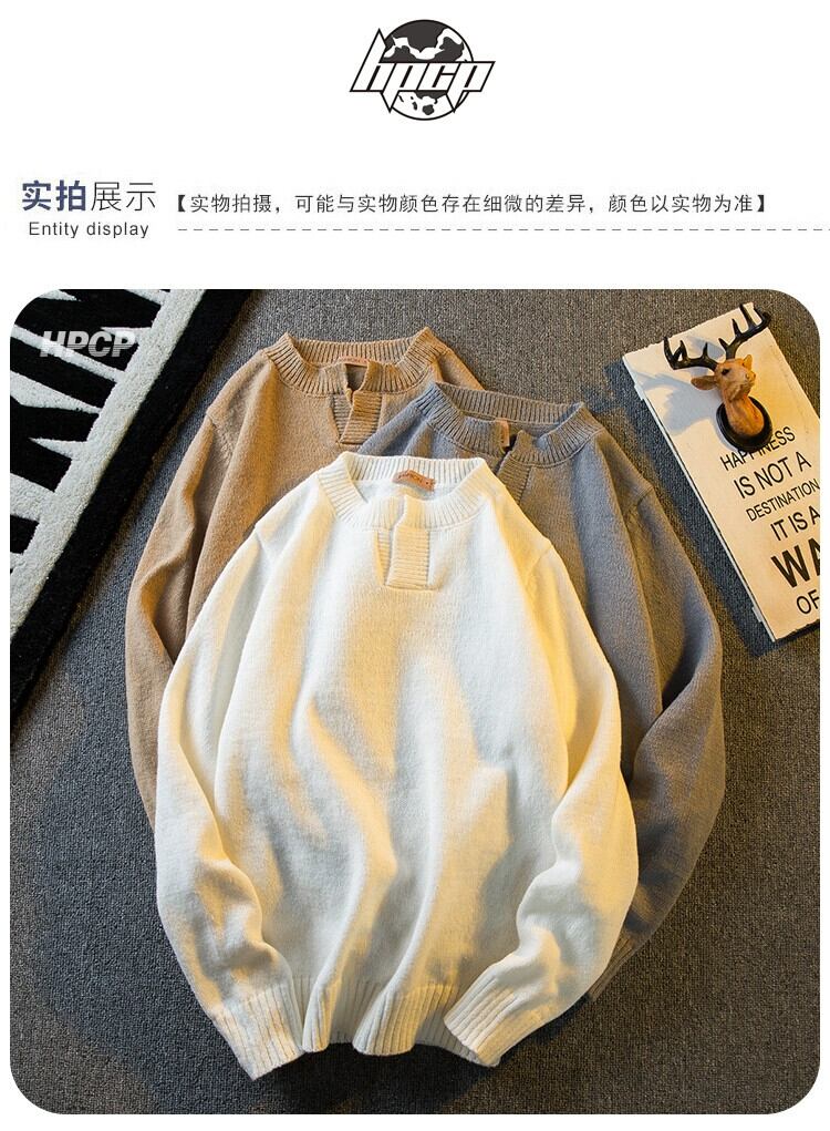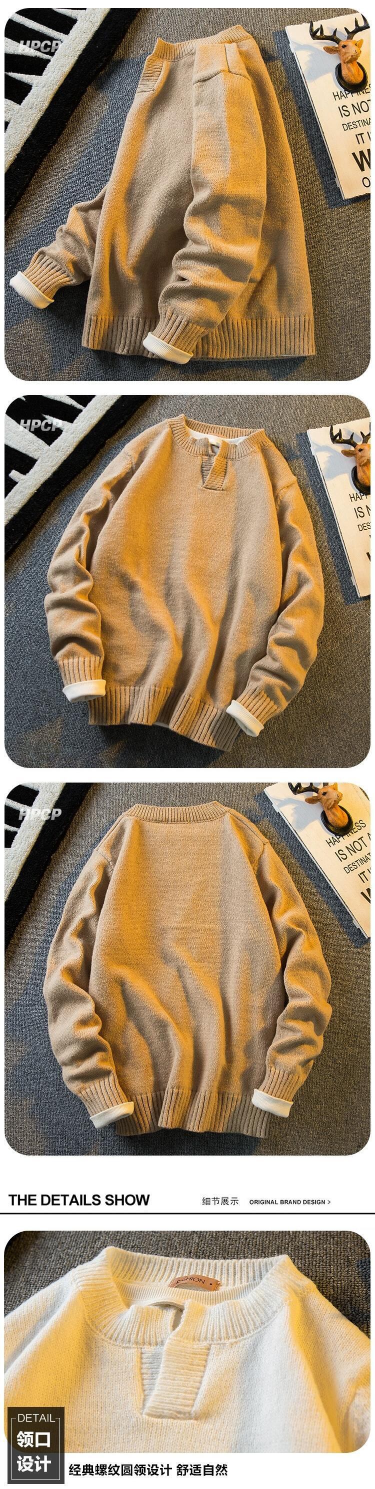 Hengpai トレンディな V ネック無地インナーセーター秋冬メンズ多用途人気ラウンドネックスリムボトムセーター オータム 秋物 ウィンター 冬物 Oネック Vネック ソリッドカラー 3381974631510320