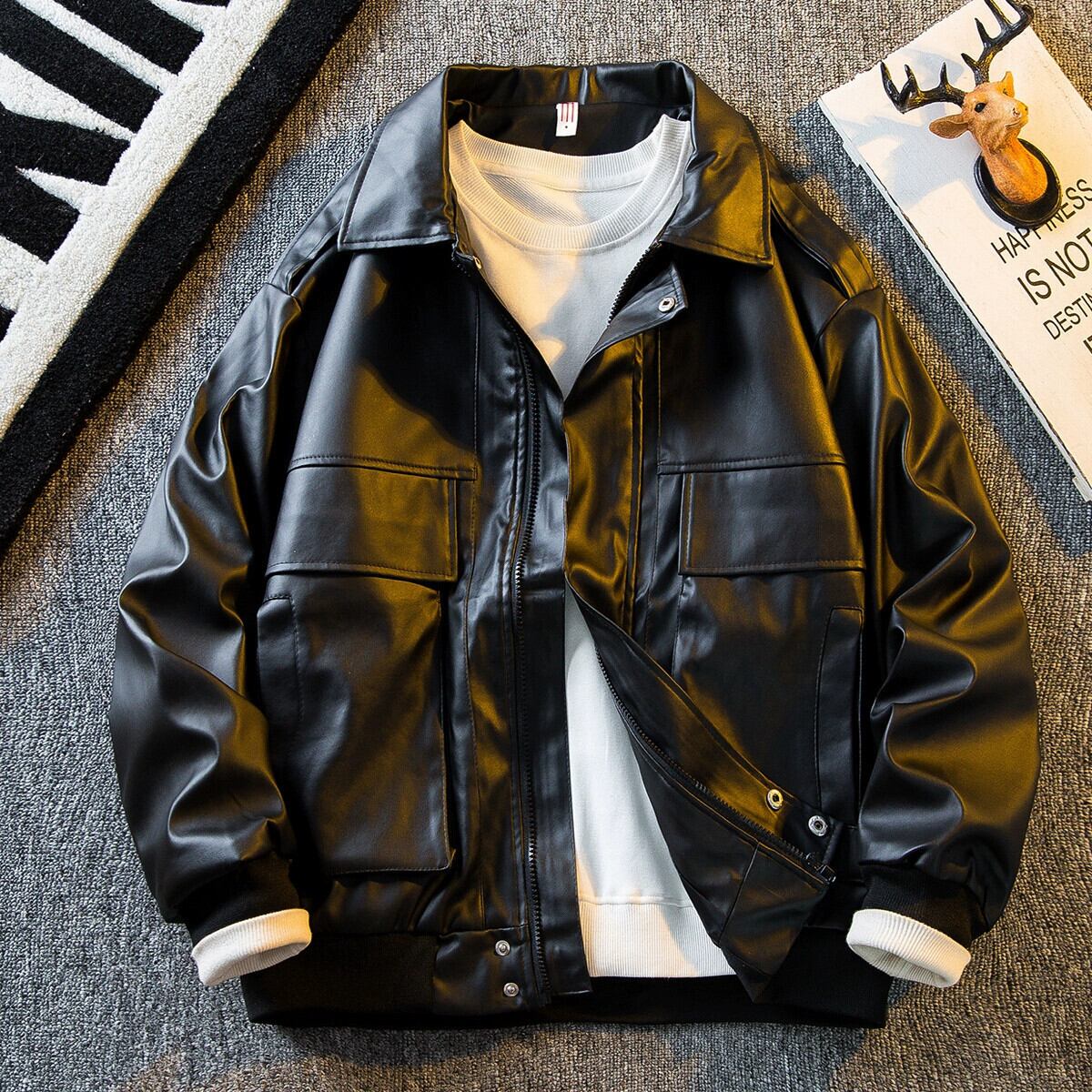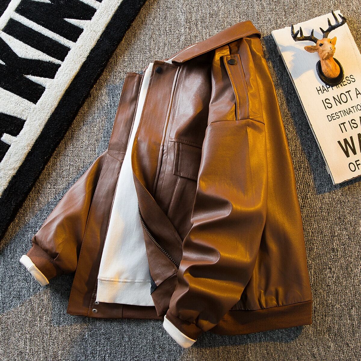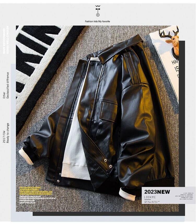 HPCP アメリカンレトロクリーンフィットブラウンレザージャケットメンズスタイルハイエンドメンズトレンディな Pu レザージャケット 3381962232534886