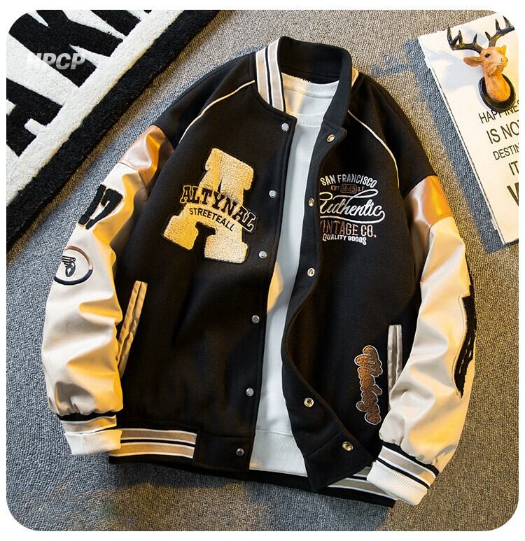 Hengpai トレンディなアメリカンレトロスタイル重工業刺繍野球ジャケットメンズ春と秋のトレンディなブランドカジュアルジャケット春の摩耗 レッド スプリング 春物 オータム 秋物 3381943984789416