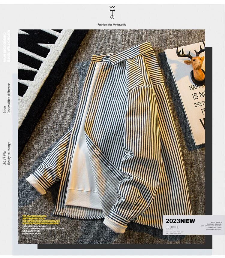 HPCP 高級ストライプシャツメンズ長袖秋のハイエンドトレンドブランドゆったりハンサムなメンズカジュアルシャツジャケット ロング オータム 秋物 3381987791029451