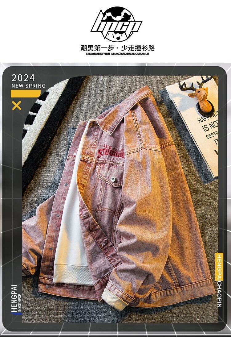 Hengpai トレンディなアメリカン レトロなウォッシュ デニム ジャケット メンズ春と秋の新しいハイエンドのハンサム カジュアル ジャケット スプリング 春物 オータム 秋物 3381981043220897