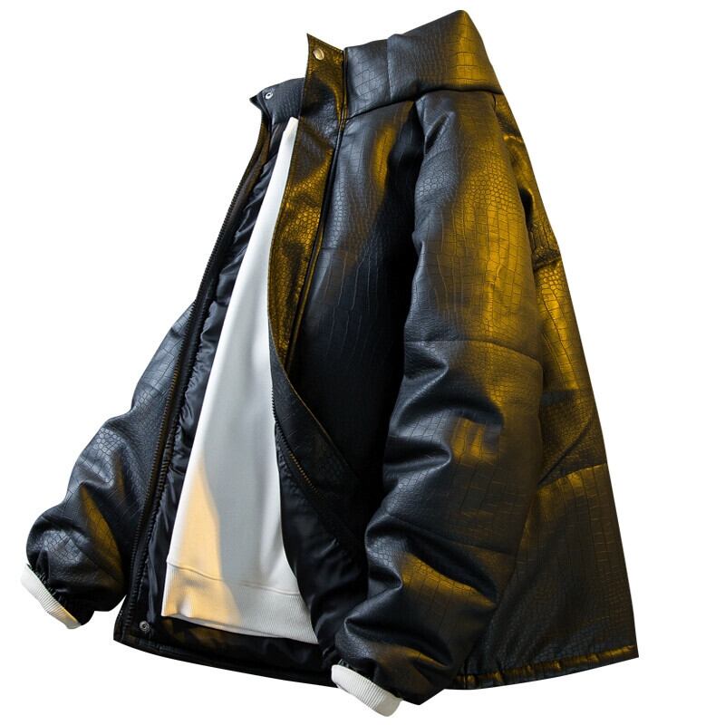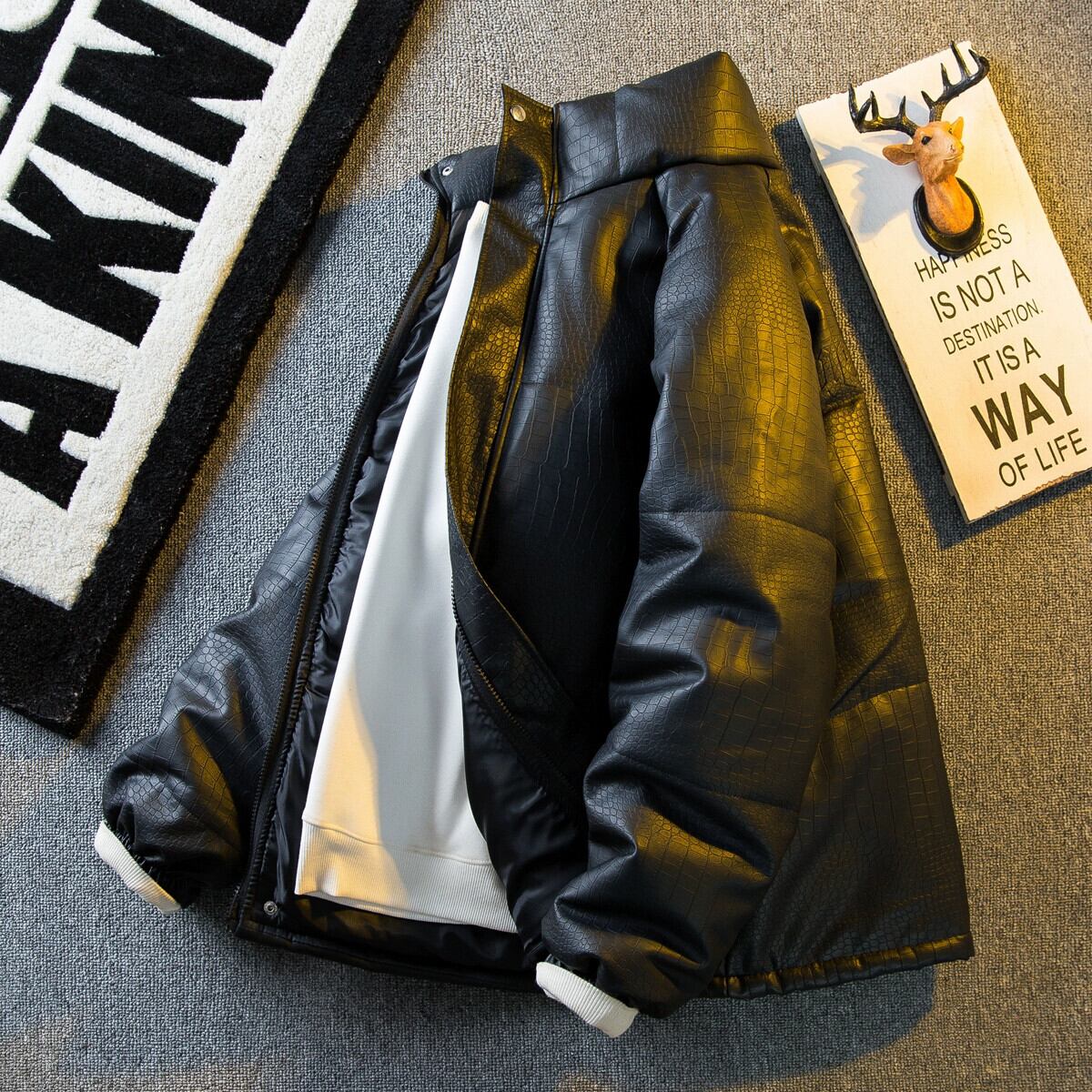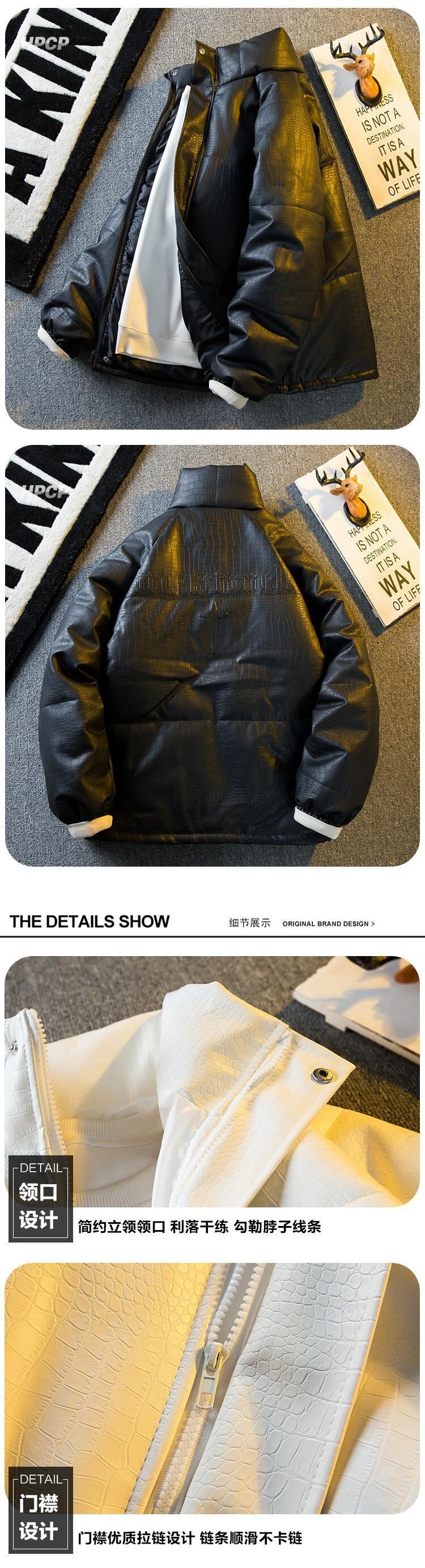 Hengpai トレンディなアメリカのトレンディなブランド黒 PU レザーコットンコートメンズ冬スタンドアップカラーハイエンドハンサムな綿パッド入りのレザージャケット ブラック ウィンター 冬物 3381975927463454