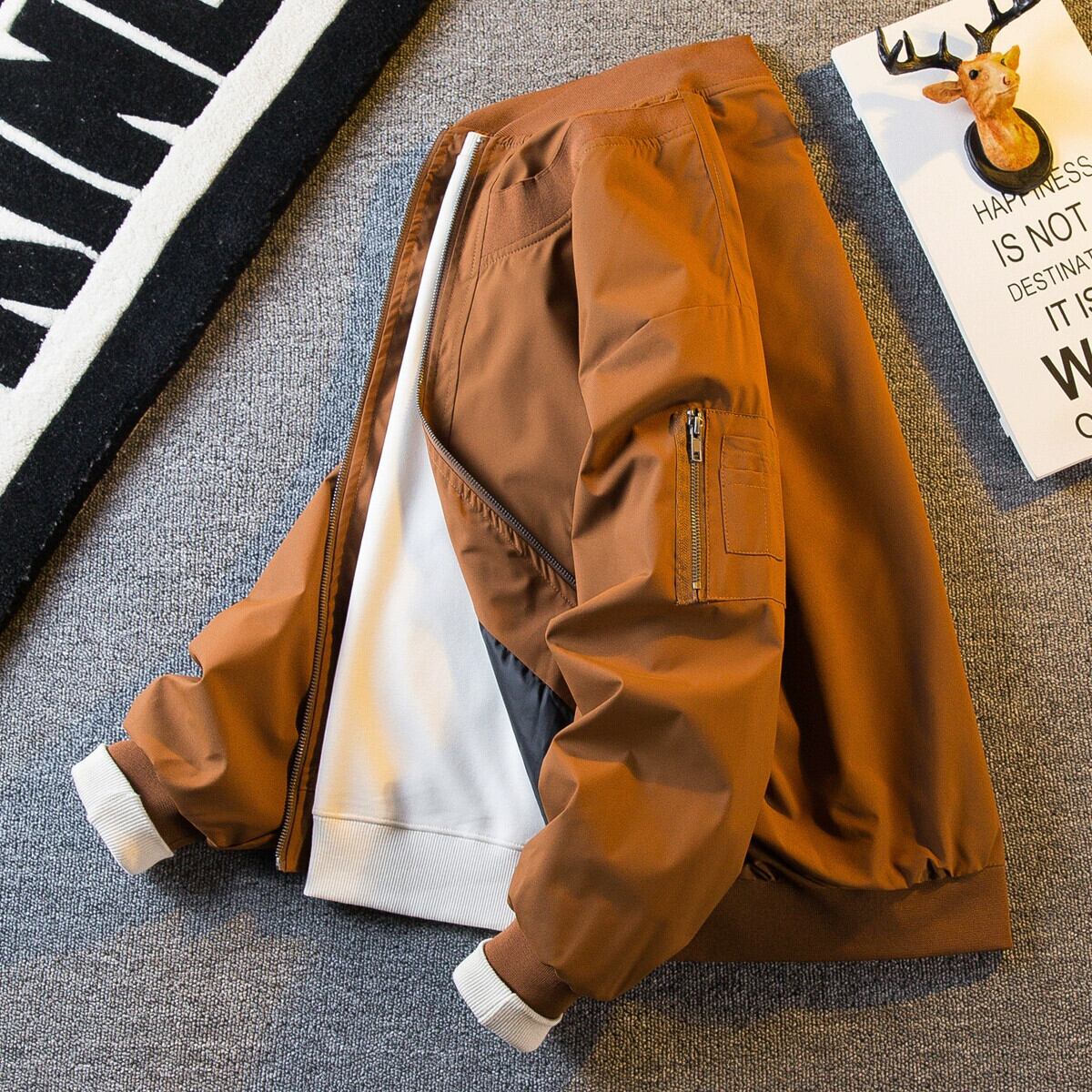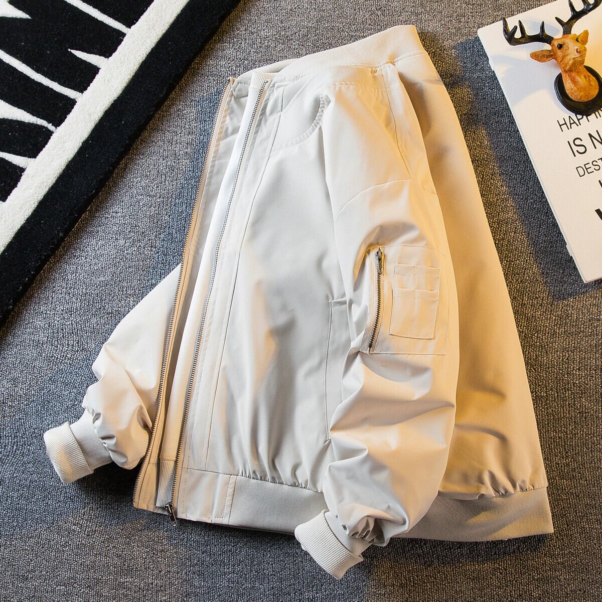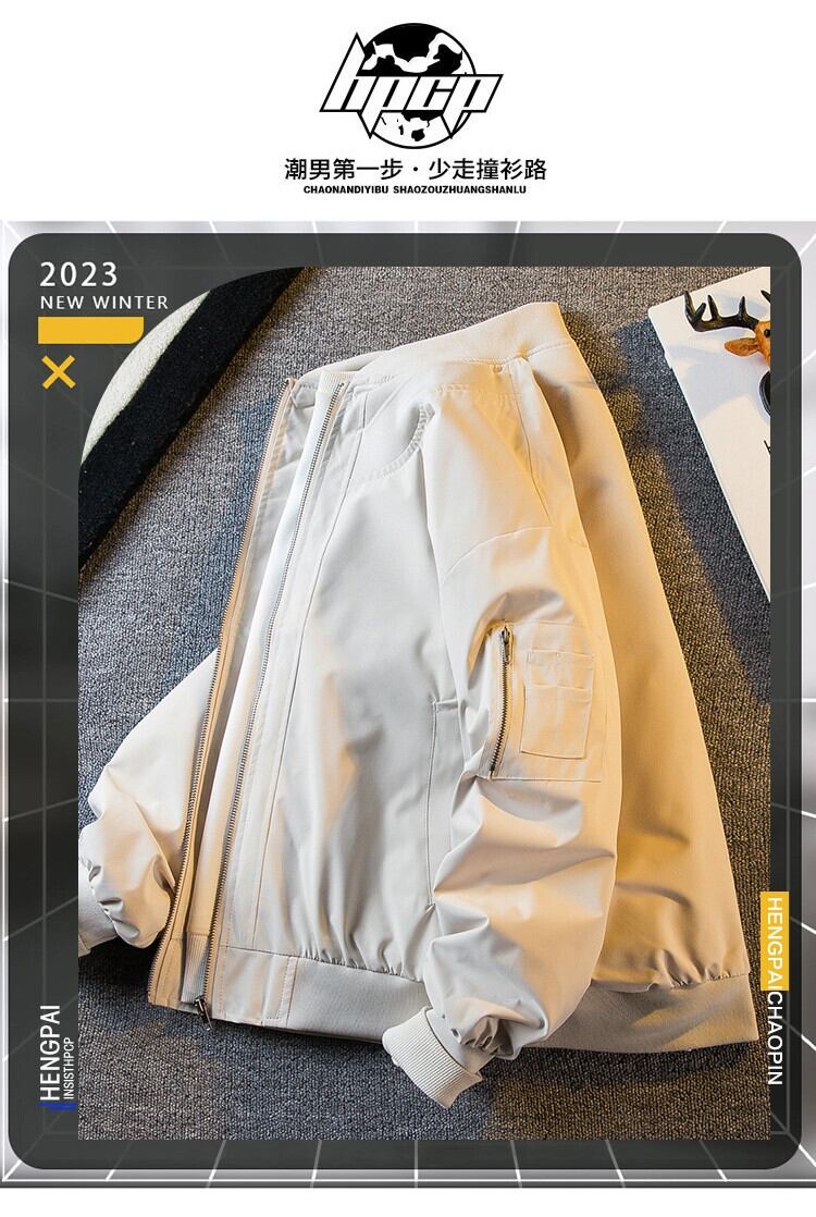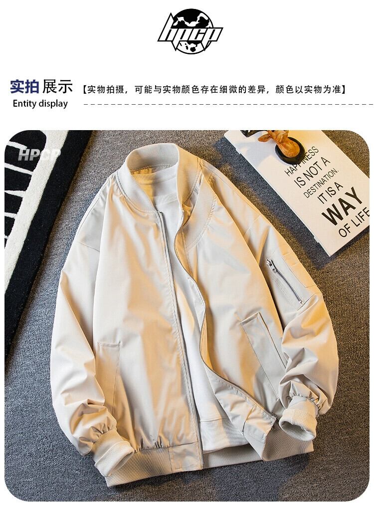 Hengpai トレンディなアメリカン レトロなワークウェア フライト ジャケット メンズ 春と秋のメンズ カジュアル トレンディ ブランド野球ユニム ジャケット 春服 スプリング 春物 オータム 秋物 3381992261600682