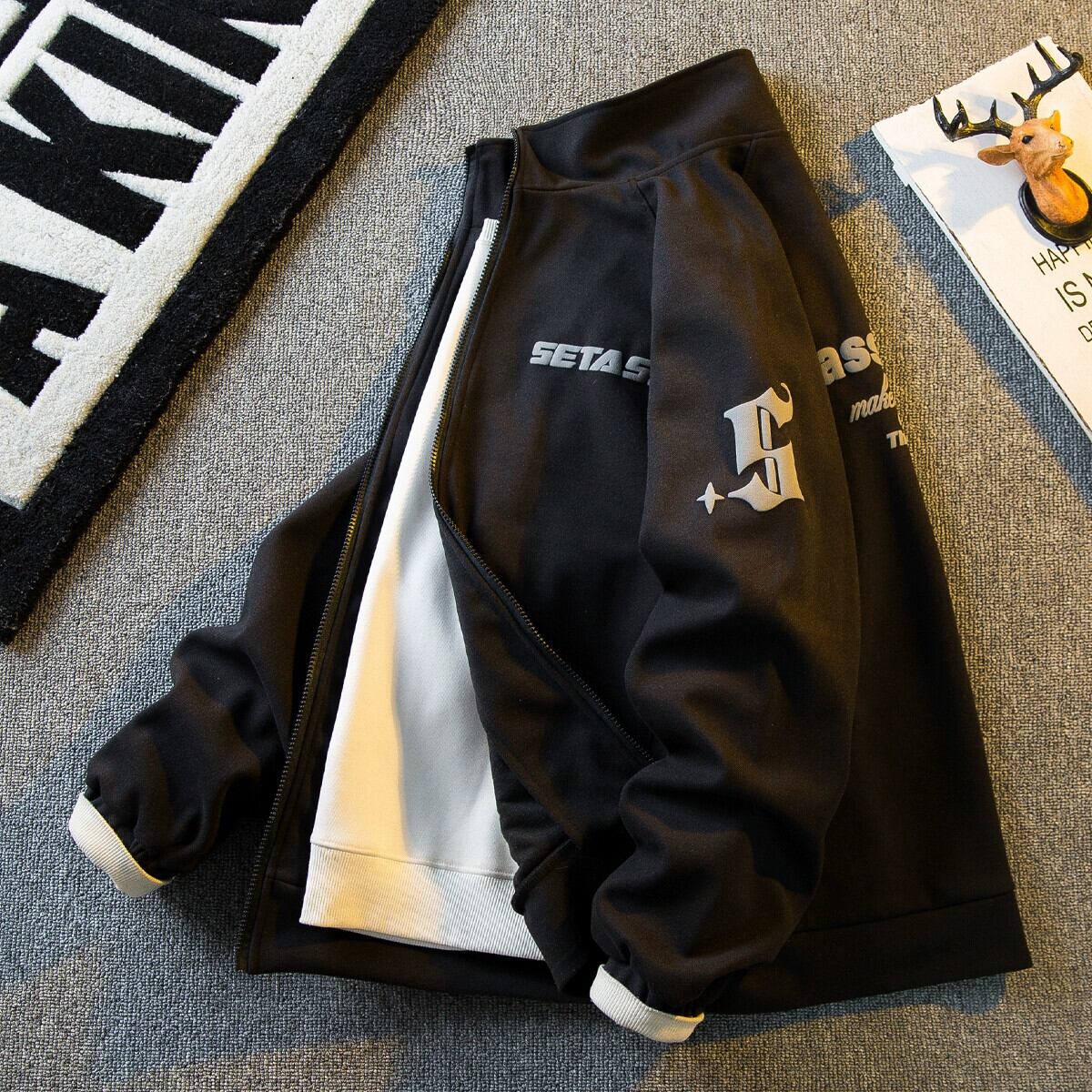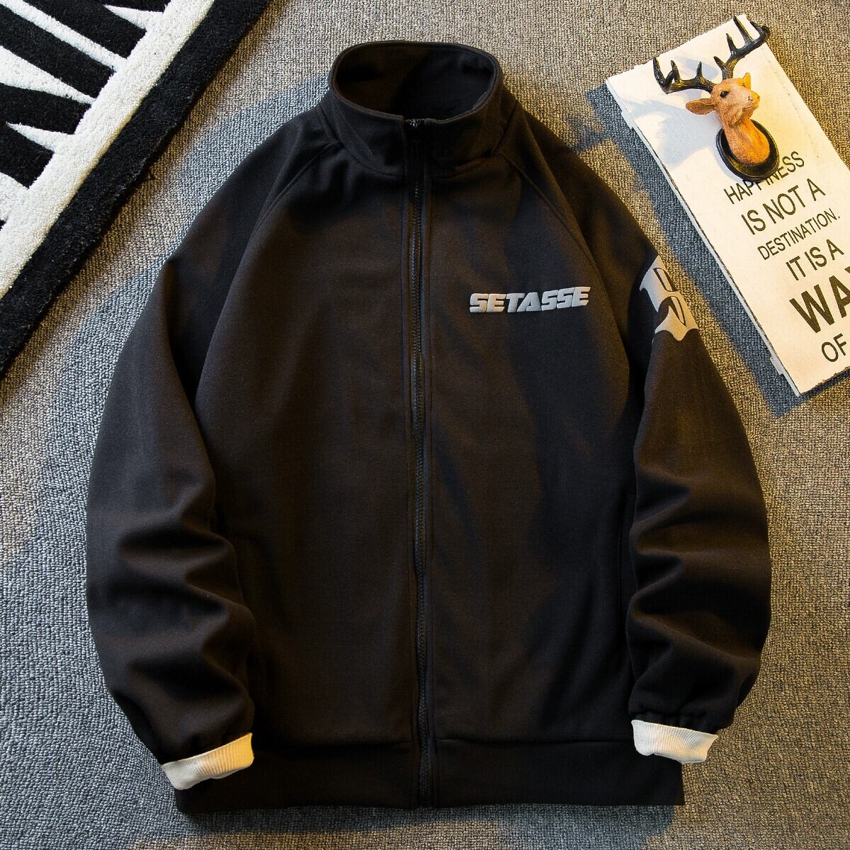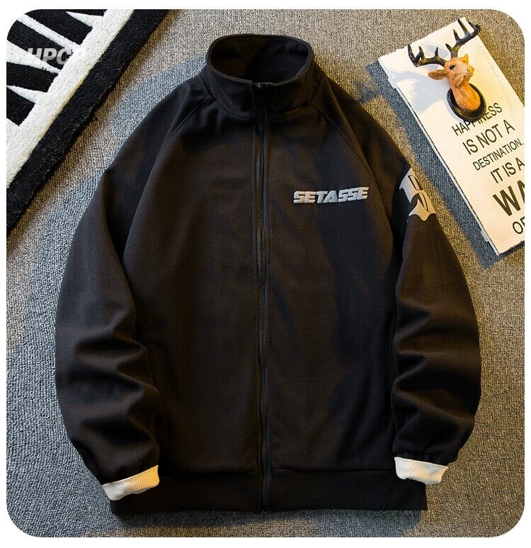 Hengpai トレンディなヘビーウェイト アメリカ スタンドカラー スエード ジャケット メンズ 春と秋のハイストリート ファッション ブランド ヒップホップ カーディガン スウェットシャツ ジャケット スウェード スプリング 春物 オータム 秋物 3381997797644294