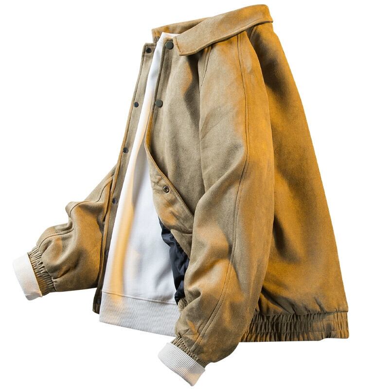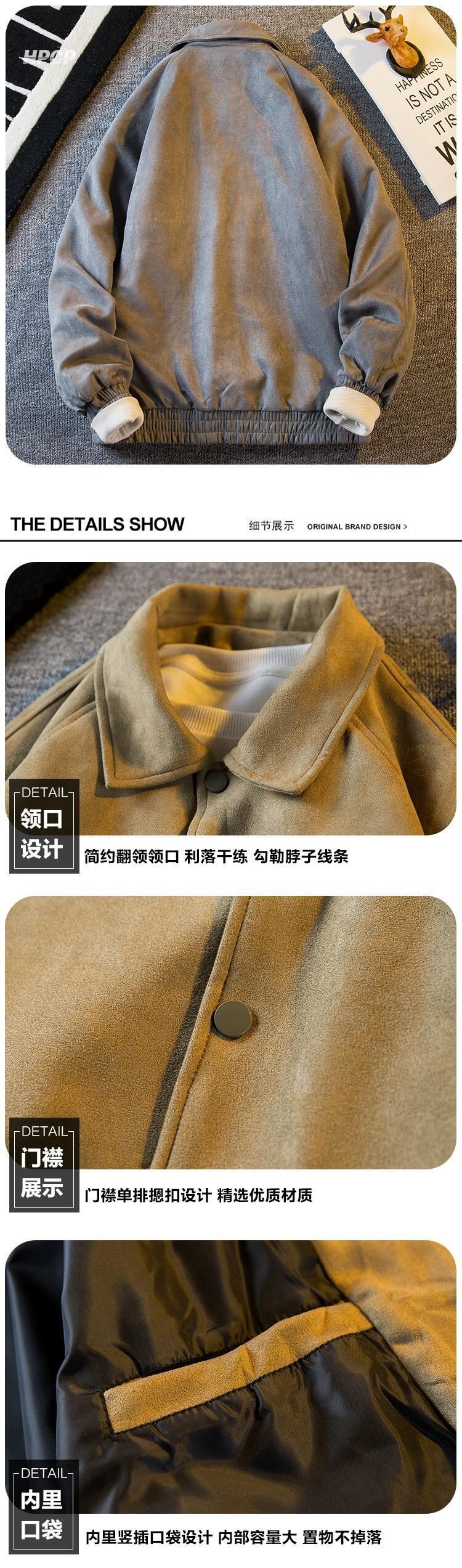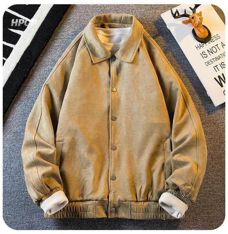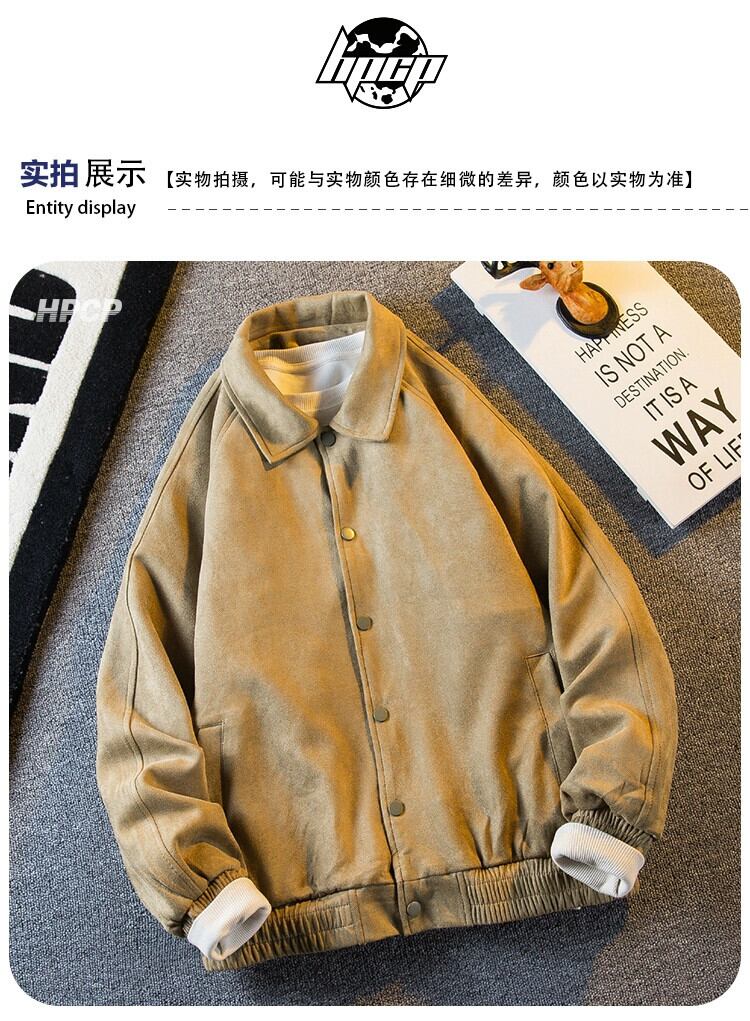 Hengpai トレンディなアメリカン レトロな無地ラペル ワーク ジャケット メンズ スエード ベースボール ジャケット メンズ 春と秋のスタイル スウェード スプリング 春物 オータム 秋物 ソリッドカラー 3381963125502353
