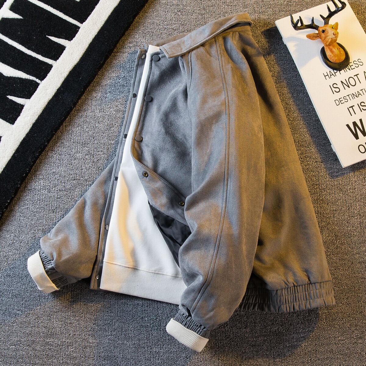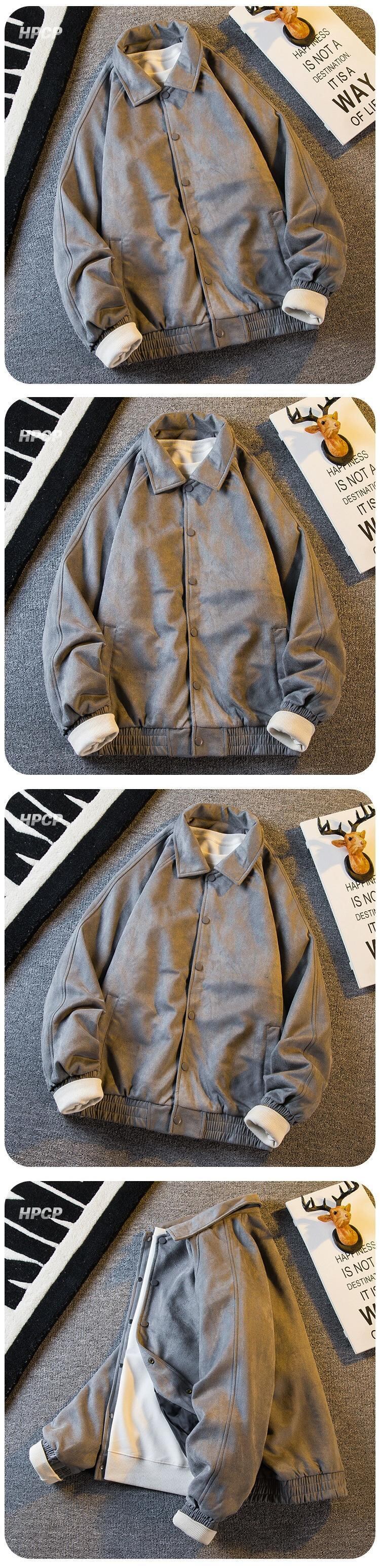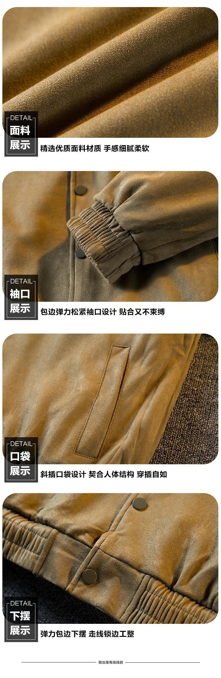 Hengpai トレンディなアメリカン レトロな無地ラペル ワーク ジャケット メンズ スエード ベースボール ジャケット メンズ 春と秋のスタイル スウェード スプリング 春物 オータム 秋物 ソリッドカラー 3381963125502353