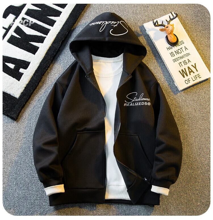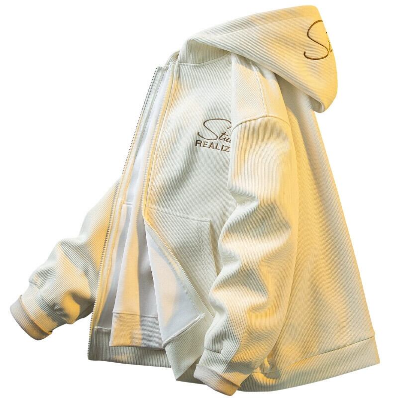 Hengpai トレンディなアメリカン レトロな刺繍ジッパー スウェットシャツメンズ春と秋の新作トレンディ ブランド ハンサム カーディガン ニット ジャケット レッド スプリング 春物 オータム 秋物 3381976182107955