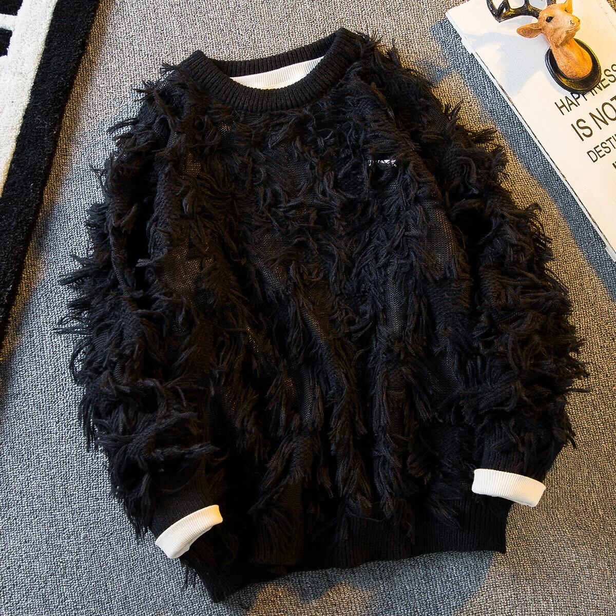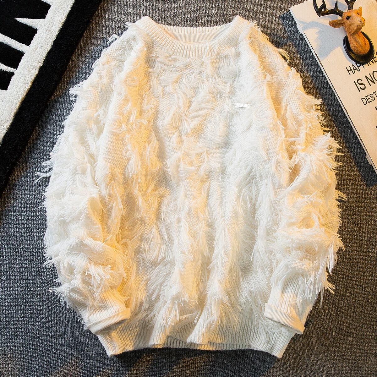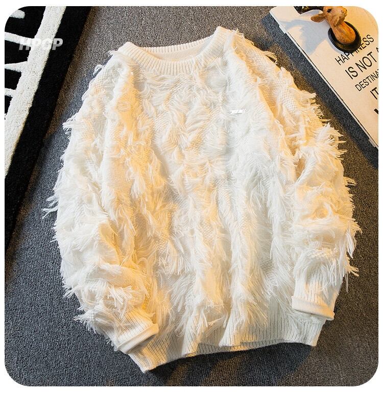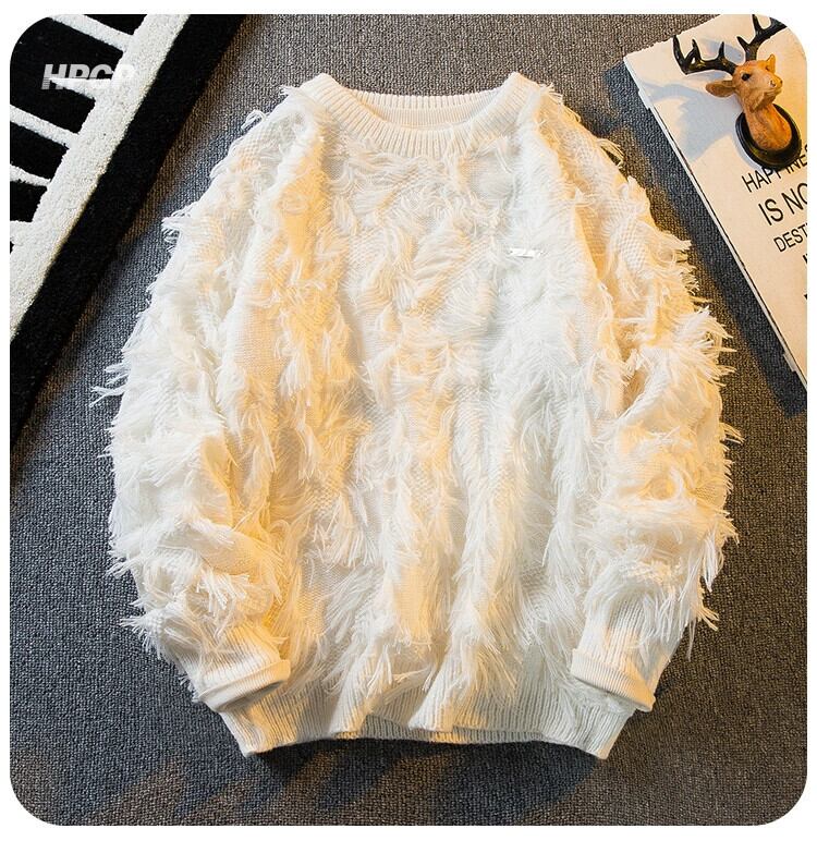 水平トレンディレトロヴィンテージテルフックアンドループセーターメンズ、怠惰なスタイル、ハイエンドストリートセータージャケット ビンテージ 338197194919478