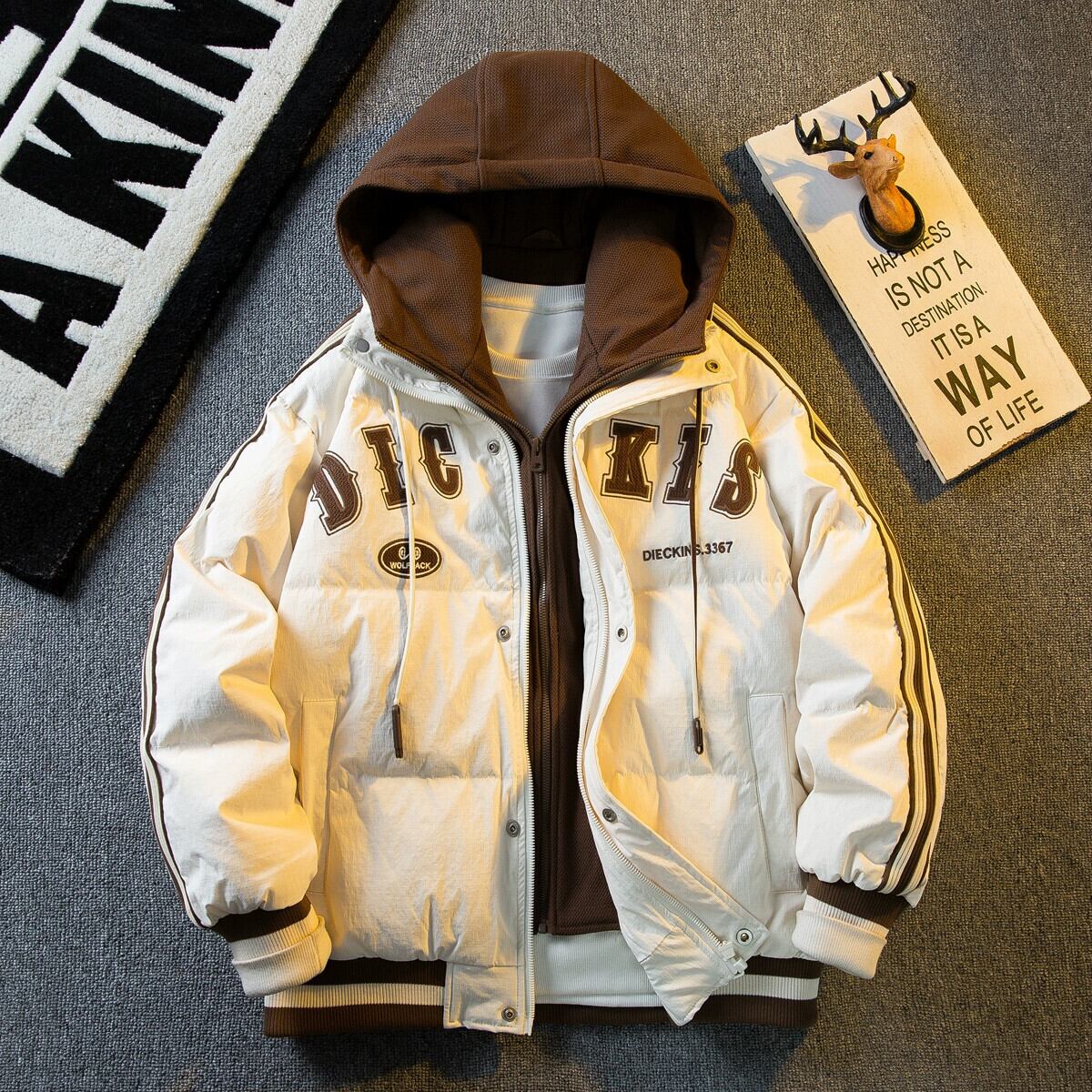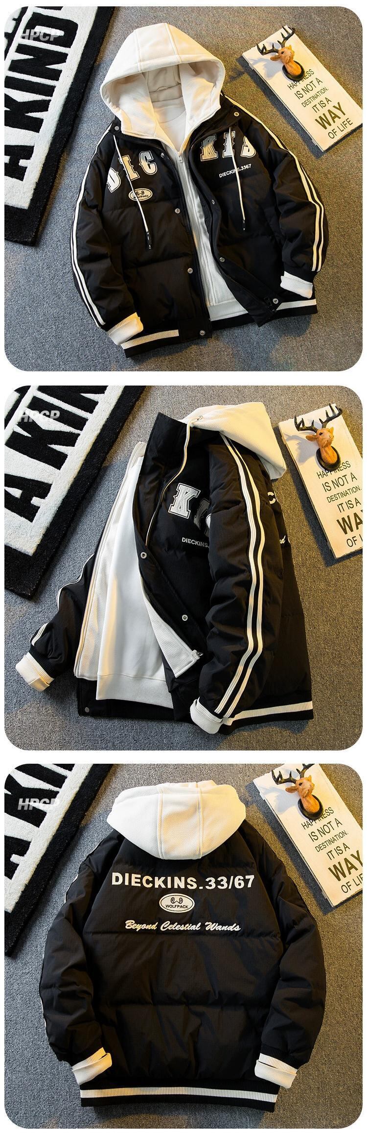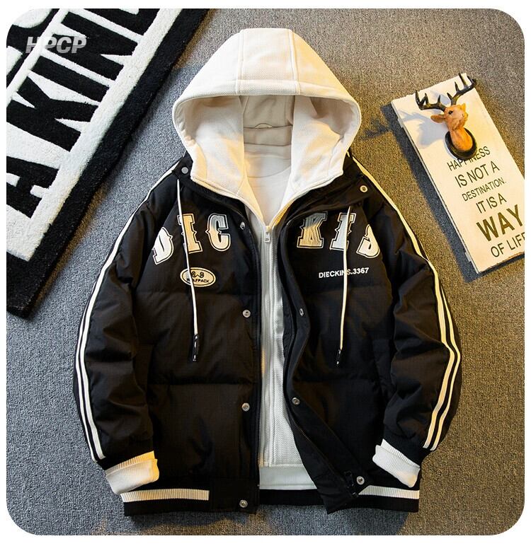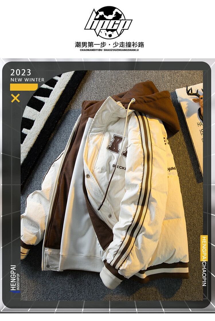 Hengpai トレンディなスプライシング偽ツーピース綿ダウンジャケットメンズ冬の新しいアメリカのトレンディなブランド肥厚野球ジャケット コットン ウィンター 冬物 3381980674376902
