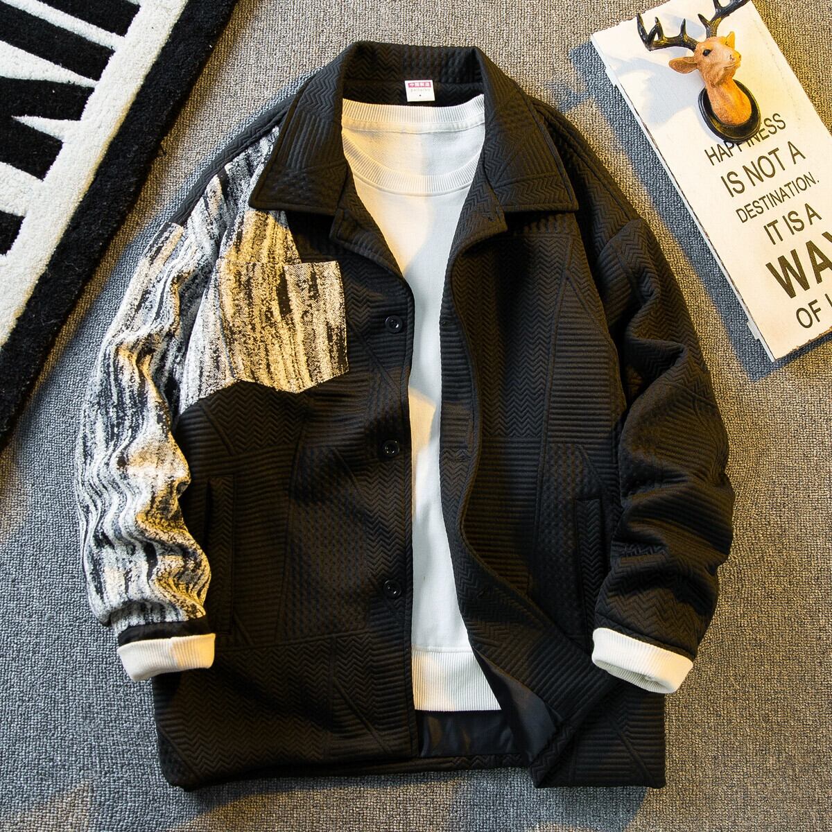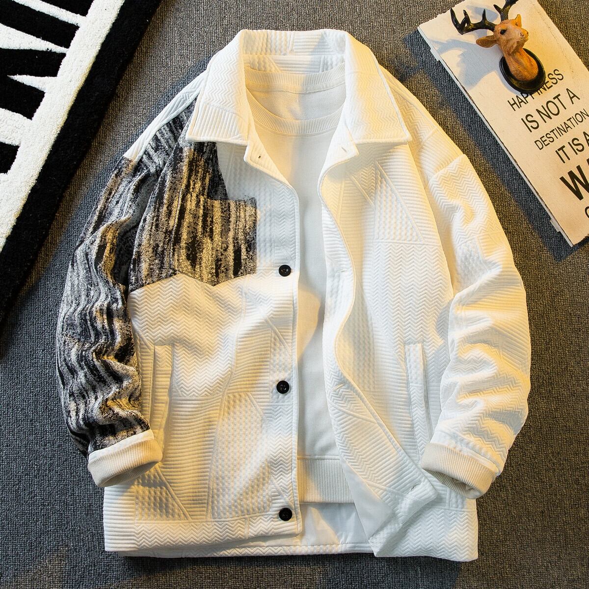 Hengpai トレンディな質感のハイエンド スプライシング小さな香りのスタイル ジャケット メンズ 春と秋のハンサムなトレンディなブランド ラペル カジュアル ジャケット スプリング 春物 オータム 秋物 3381998826063019
