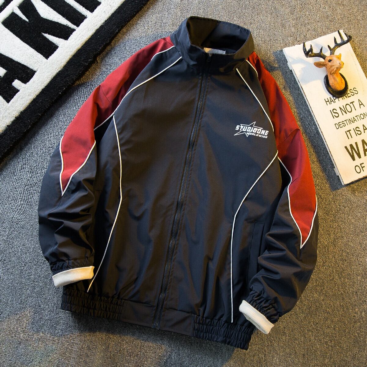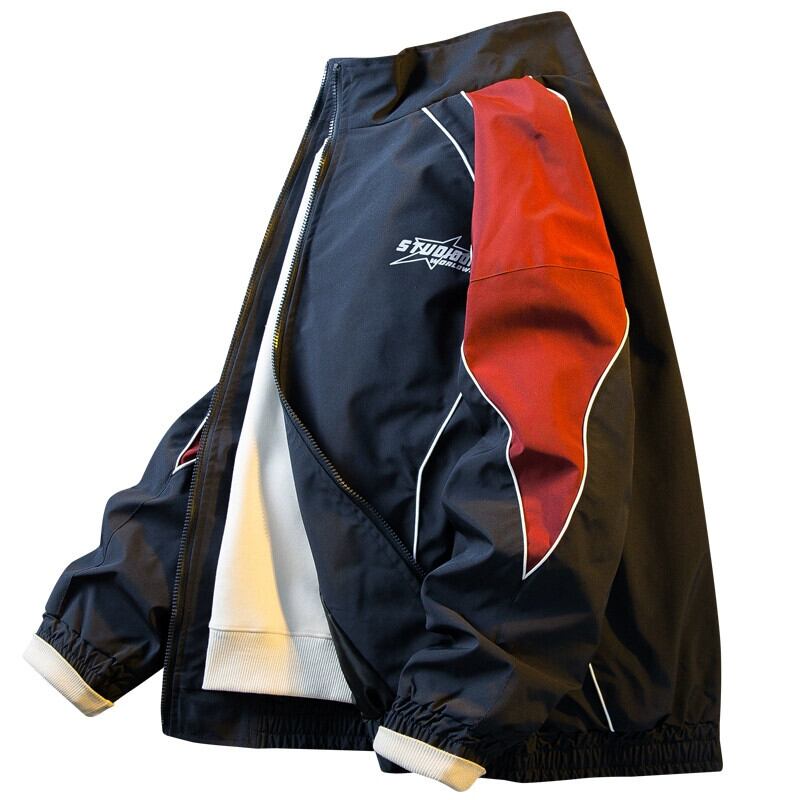 Hengpai トレンディなレトロカレッジスタイルのステッチコントラストカラースタンドカラージャケットメンズトレンディなブランドストリートルーズカジュアル春ジャケット スプリング 春物 3381964074214113
