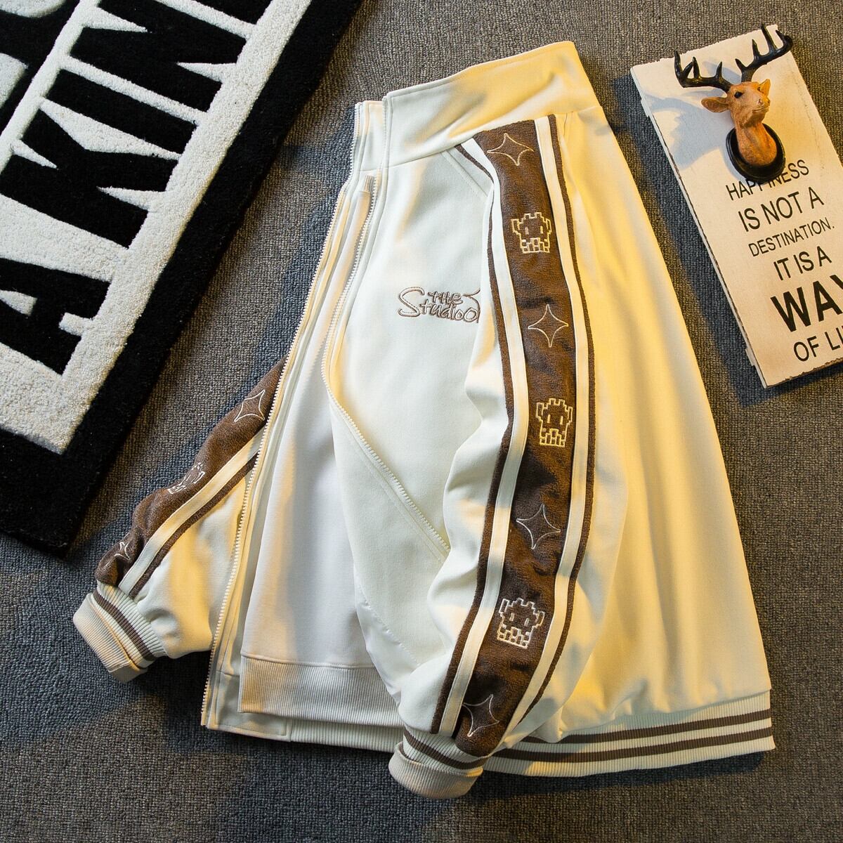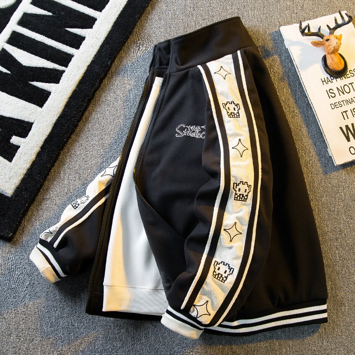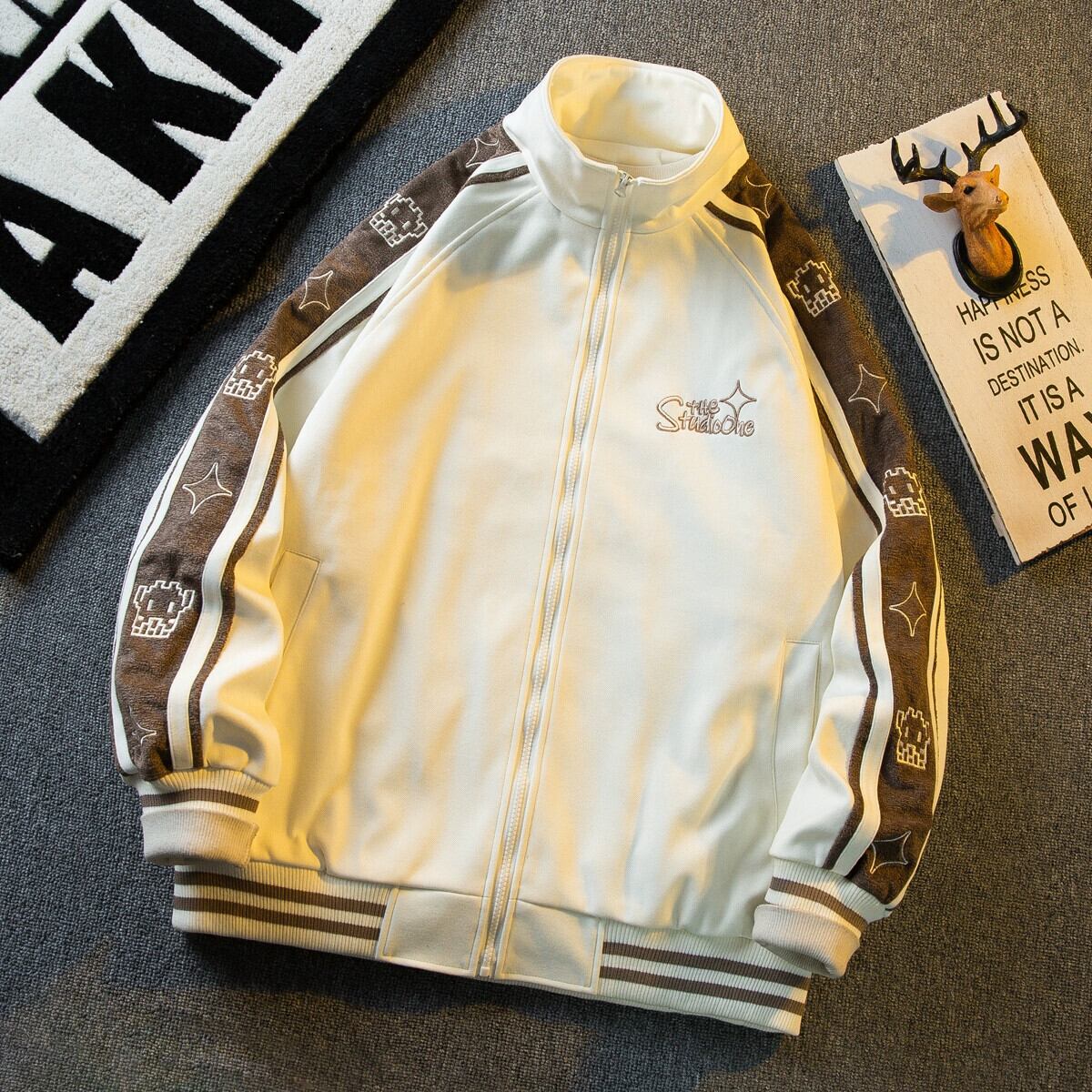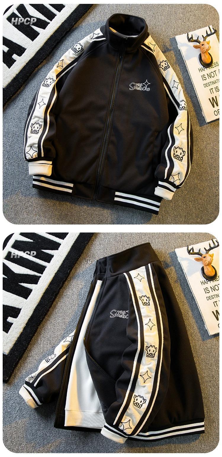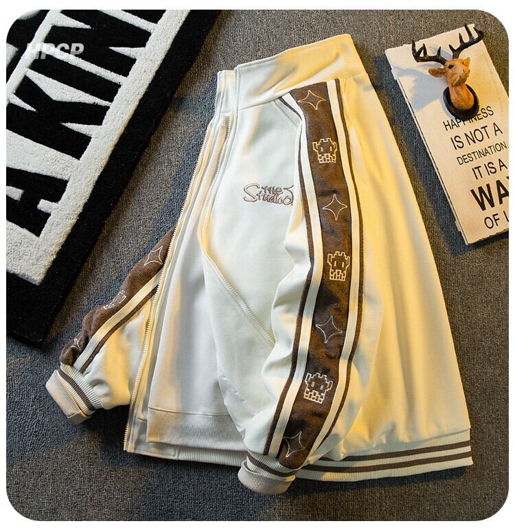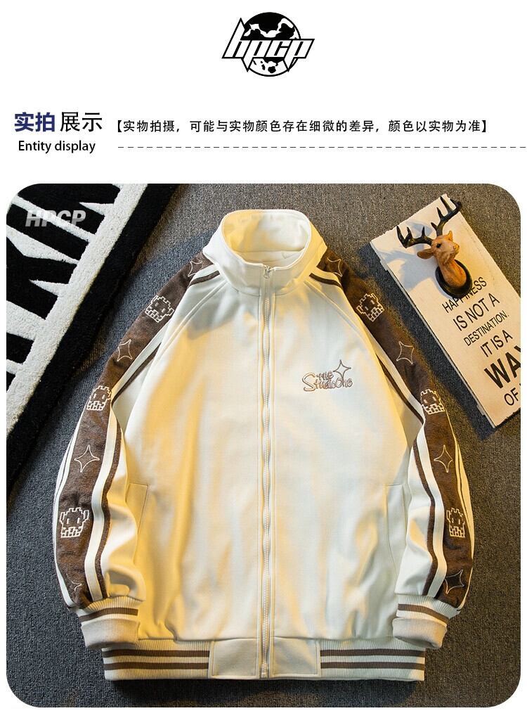 Hengpai トレンディな刺繍ステッチコントラストカラースタンドカラージャケットメンズ春と秋のスタイルのハイエンドハンサムスポーツベースボールジャケット スプリング 春物 オータム 秋物 3381941323216360