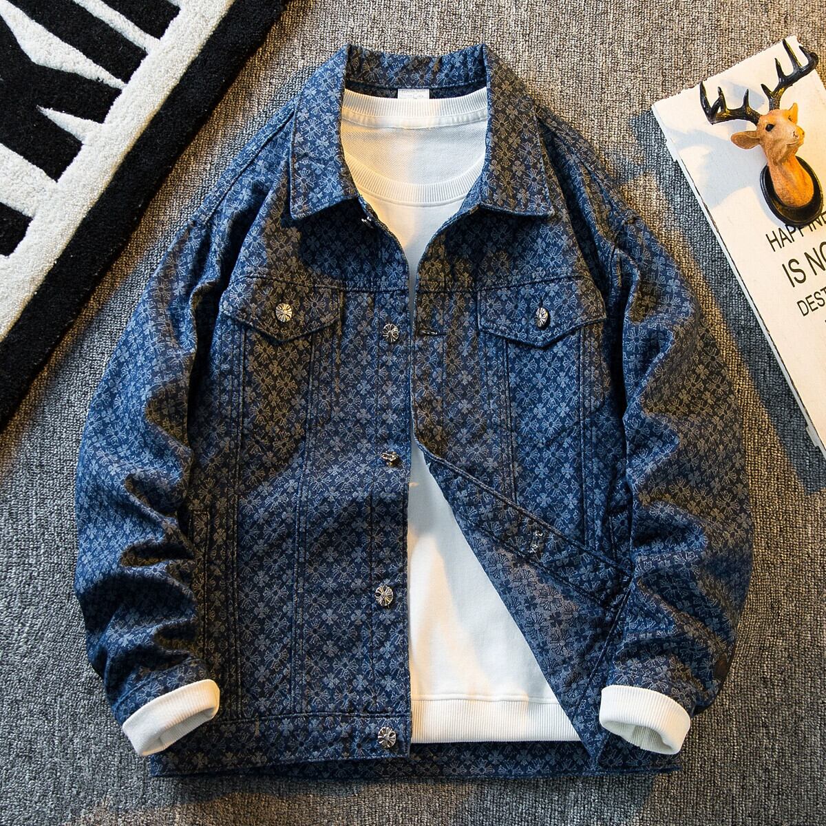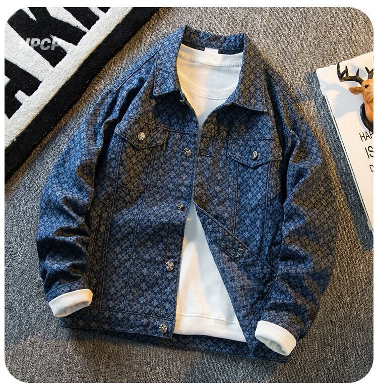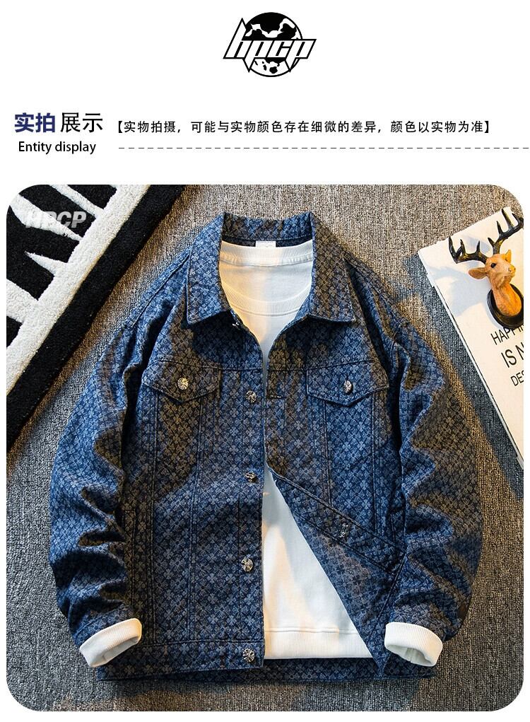 Hengpai トレンドハイエンドライト高級ジャカードデニムジャケットメンズ春と秋のハイストリートファッションブランドハイエンドメンズハンサムジャケット スプリング 春物 オータム 秋物 3381970730133659