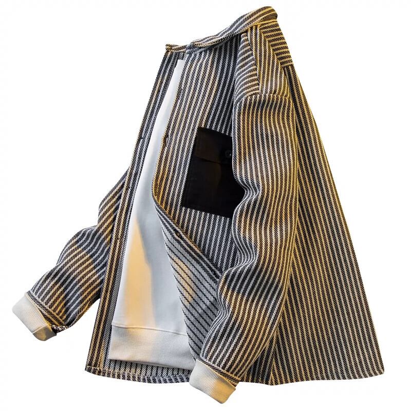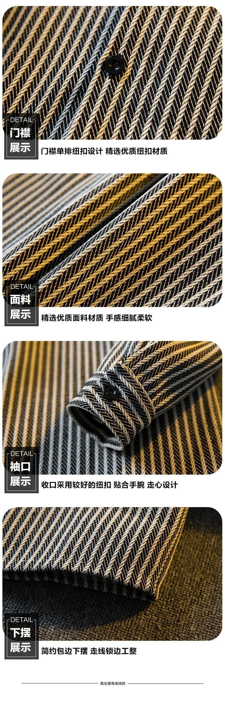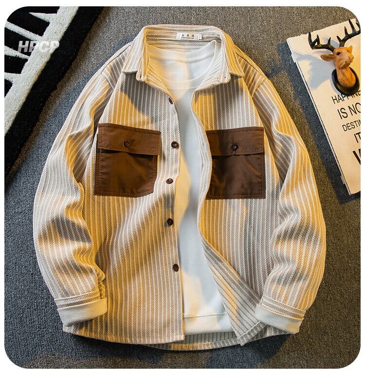 Hengpai トレンド春と秋メンズストライプシャツジャケットトレンディなブランドハイエンドラペルカジュアル長袖シャツ男性 ロング スプリング 春物 オータム 秋物 3381981489980244
