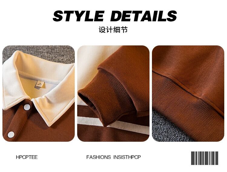 水平トレンディアメリカンレトロラペルスウェットシャツメンズ春秋カラーブロックポロカラー長袖多用途学生トップス ロング スプリング 春物 オータム 秋物 3381974749014306