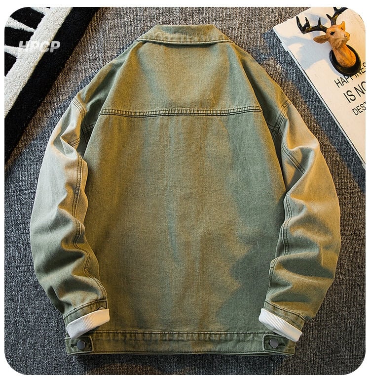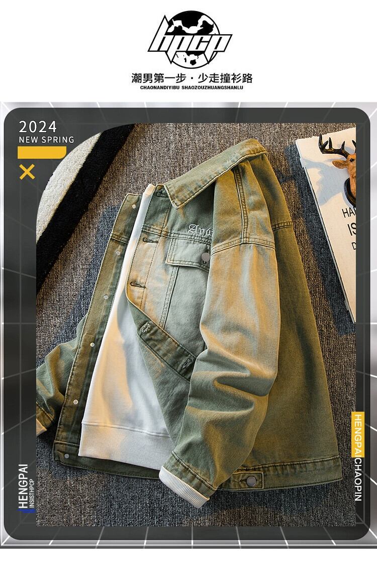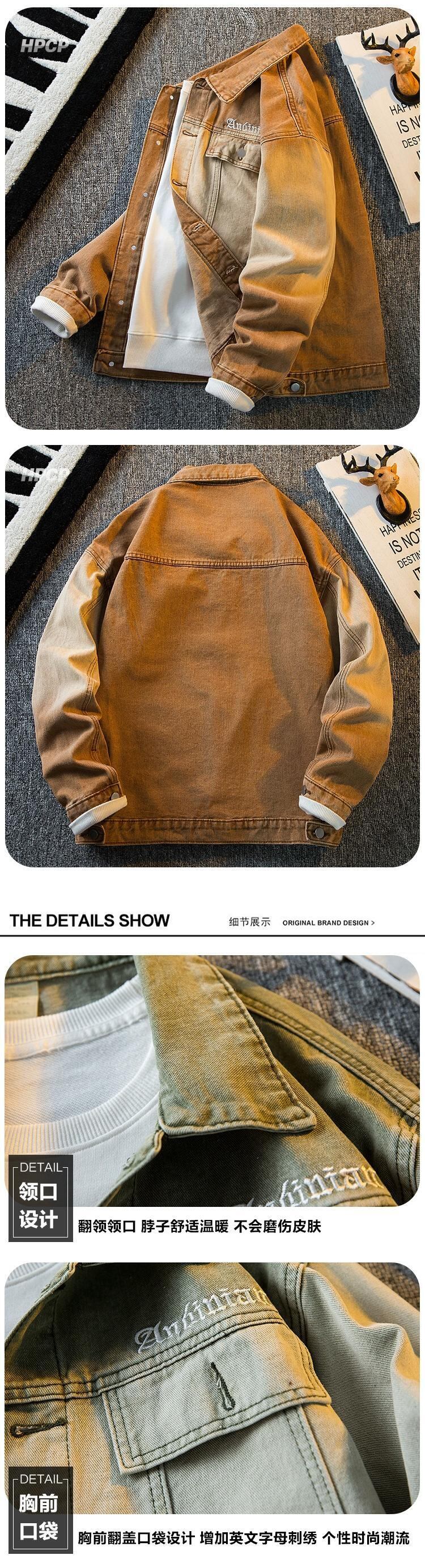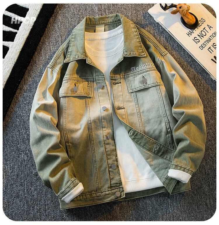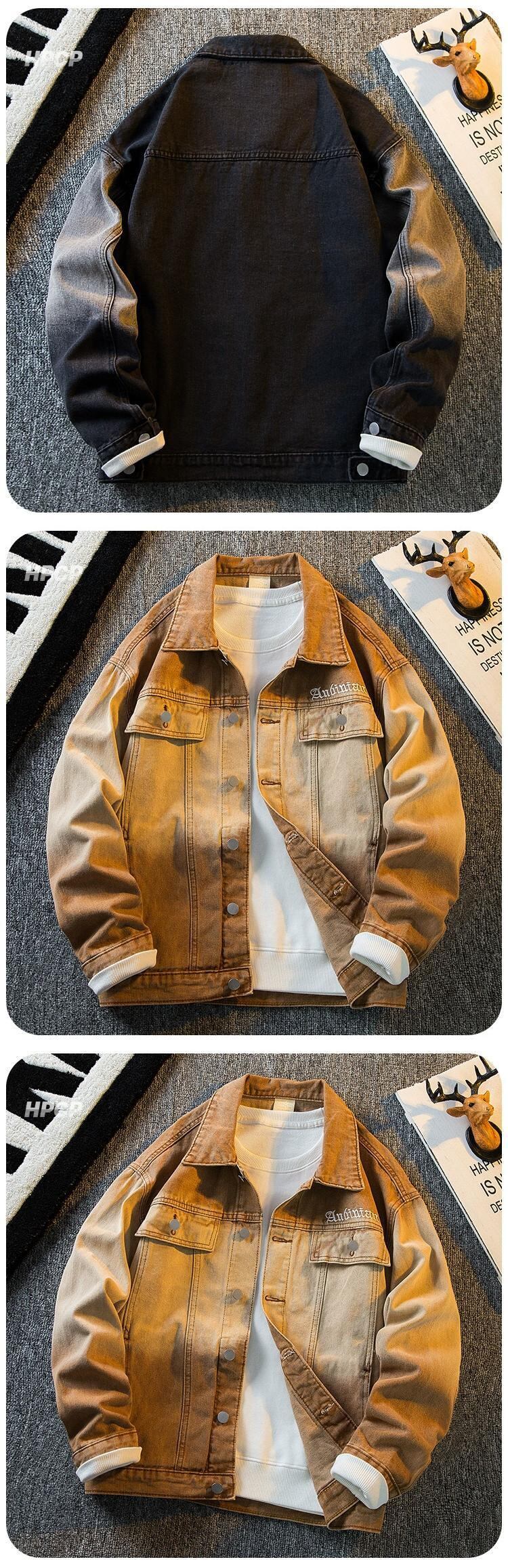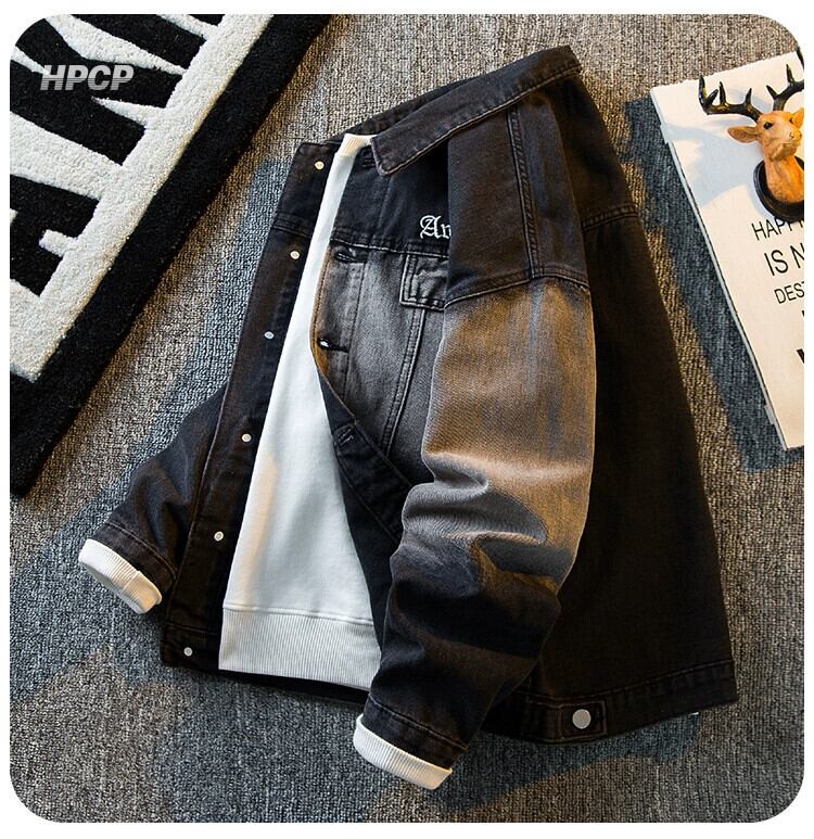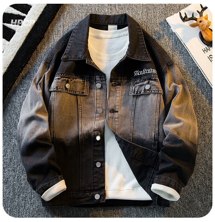 Hengpai トレンディなアメリカン ハイストリート グラデーション デニム ジャケット メンズ 春と秋のクールなスタイルのハイエンド ハンサム カジュアル ジャケット スプリング 春物 オータム 秋物 3381964525900046