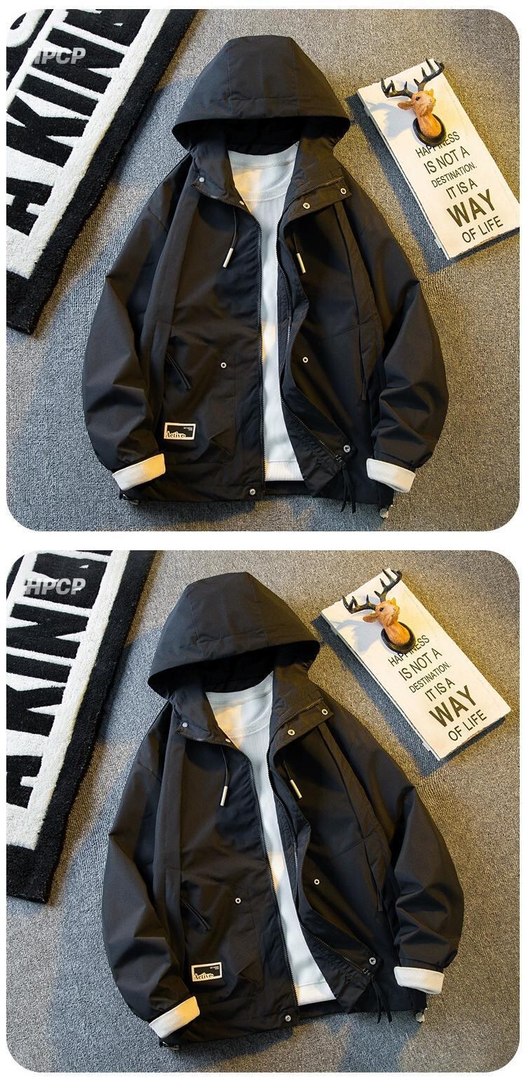 Hengpai トレンディなアメリカン レトロ アウトドア スポーツ ジャケット メンズ 春と秋のメンズ フード付きワーク ジャケット スプリング 春物 オータム 秋物 3381952951424733