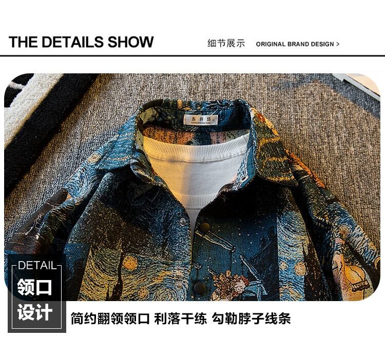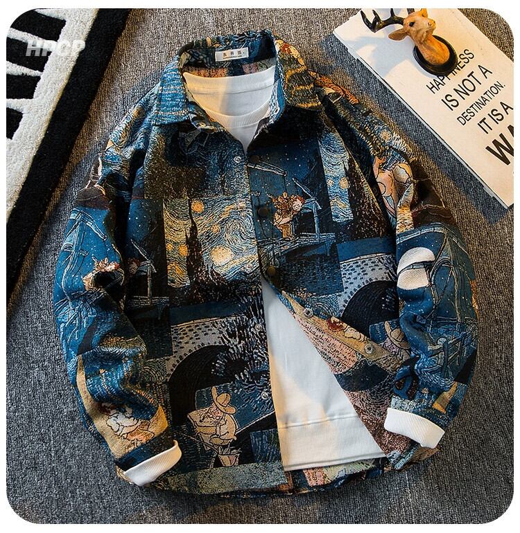 横型トレンディヴィンテージアート油絵シャツメンズ長袖アメリカンレトロハイエンドシャツジャケット ロング ビンテージ 3381952048903419
