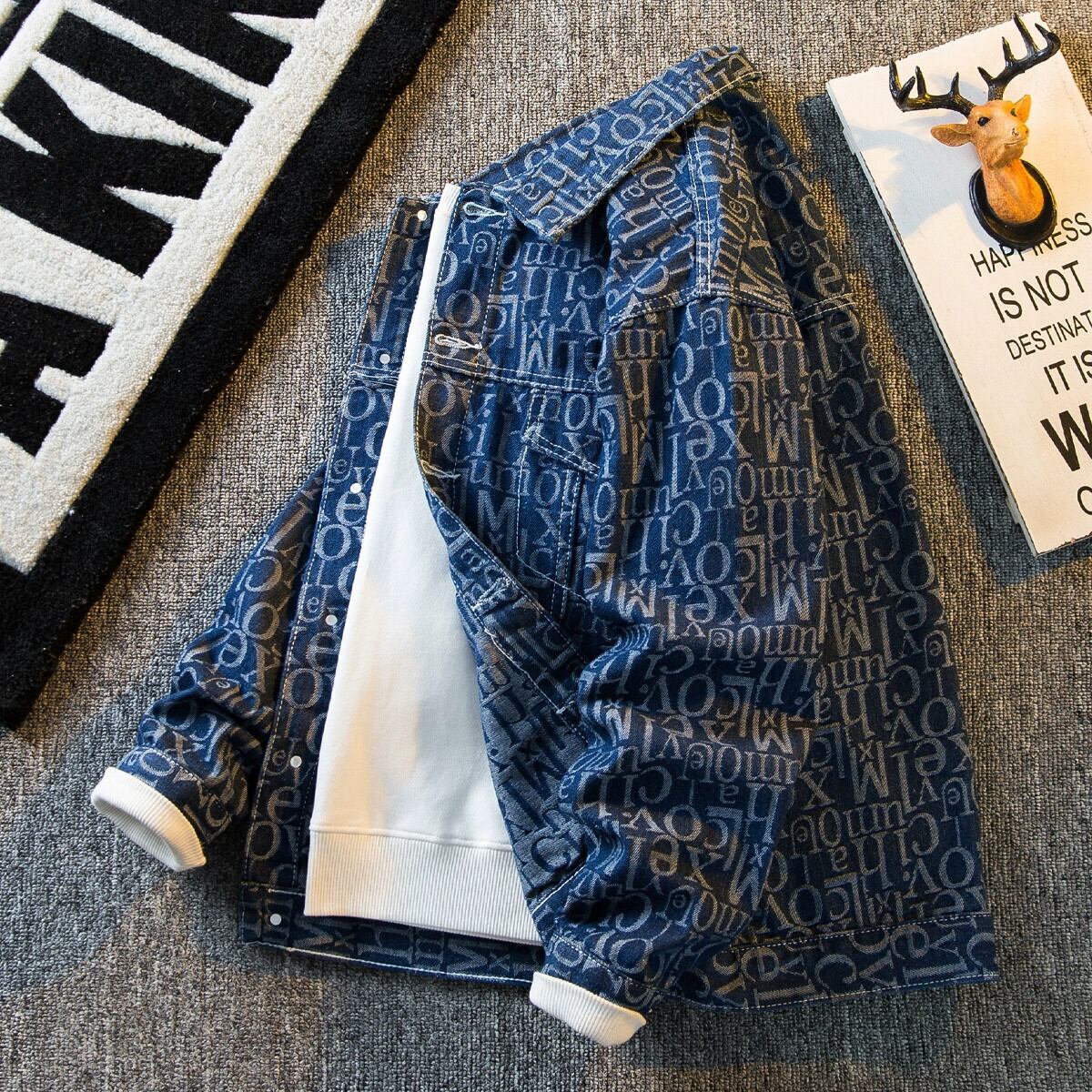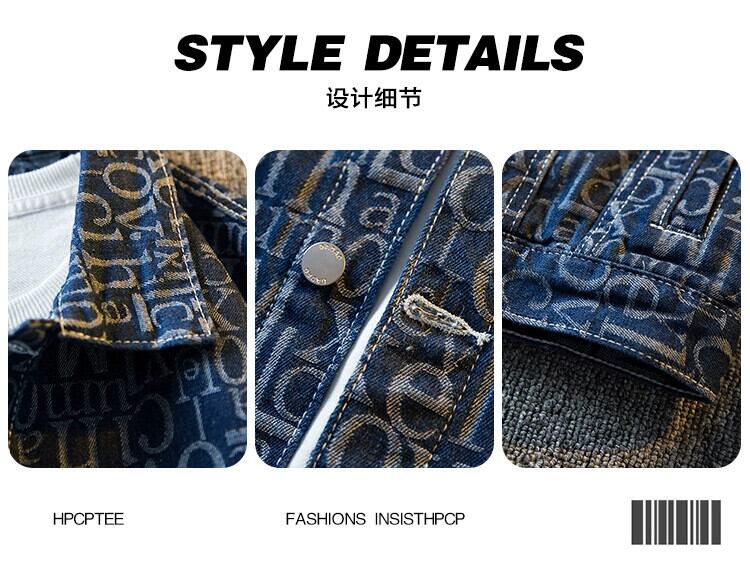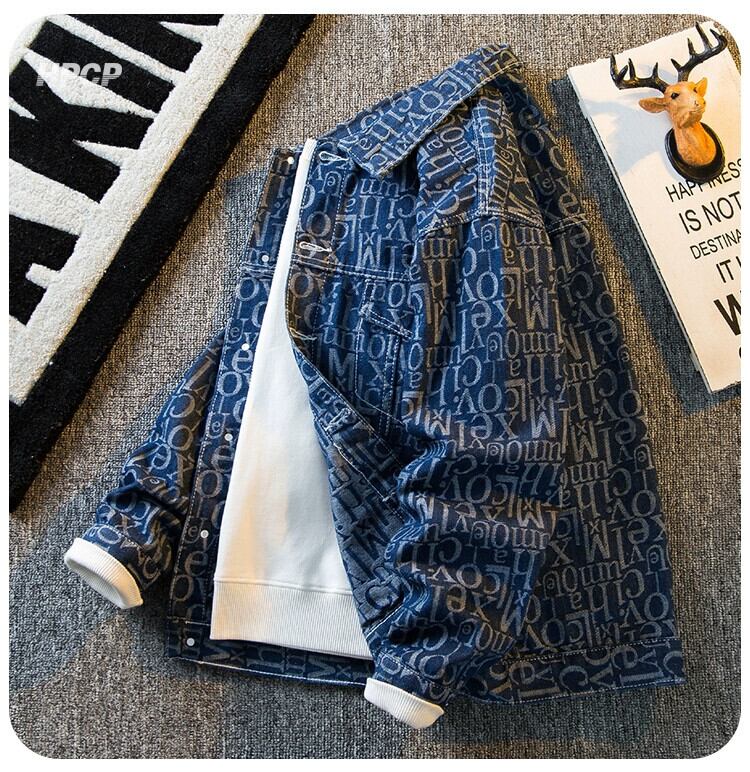 Hengpai トレンディなアメリカンレトロレタープリントデニムジャケットメンズ春の新作メンズカジュアルデニムジャケット スプリング 春物 3381995562397066