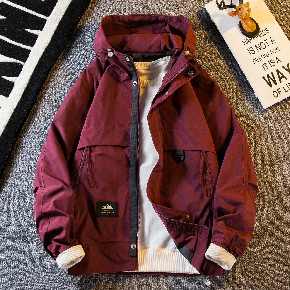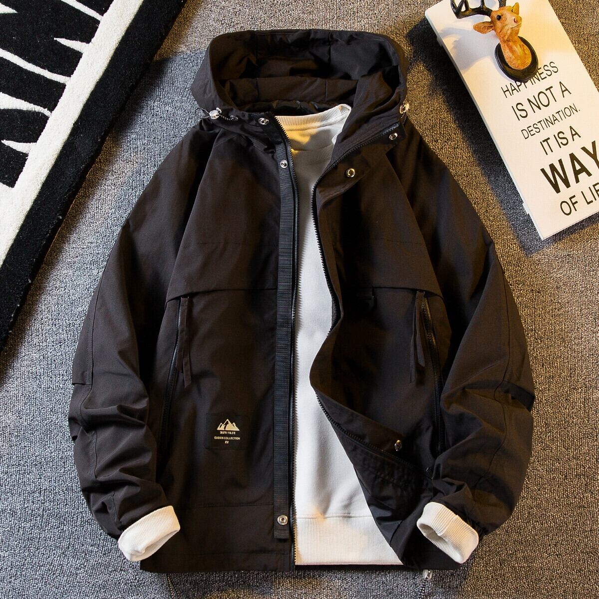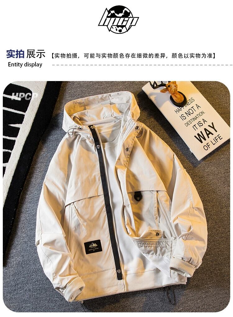 Hengpai トレンディなマウンテンスタイルのワークウェア機能的なウインドジャケットメンズ春と秋のアウトドア 3 プルーフフード付きジャケットジャケット男性 スプリング 春物 オータム 秋物 3381936340107814