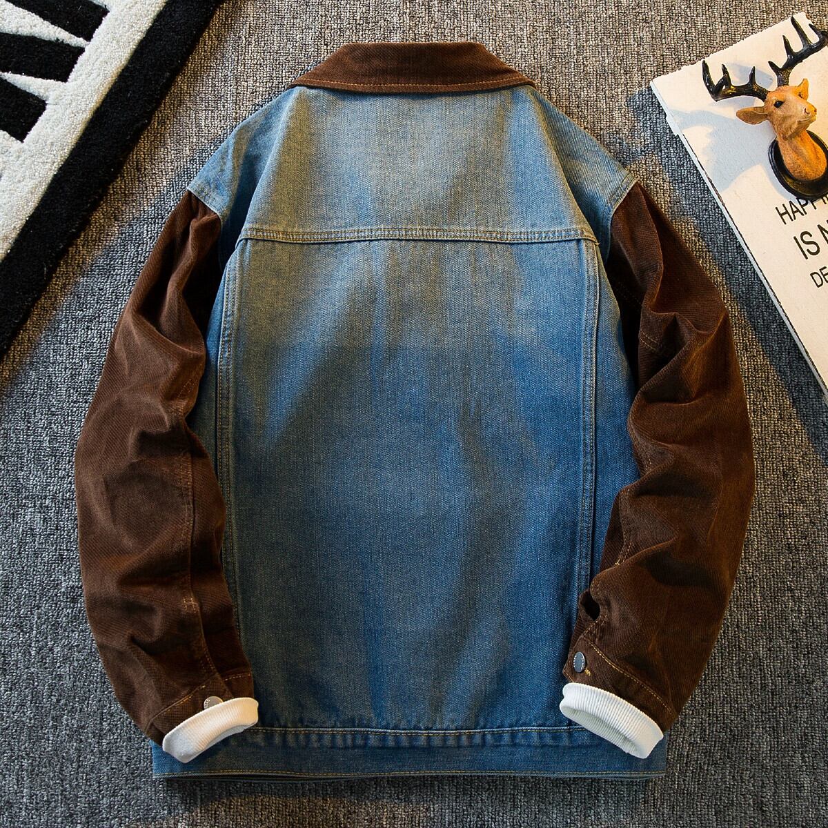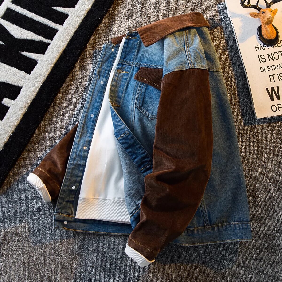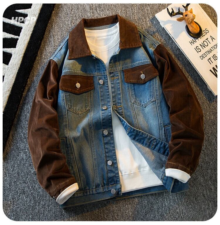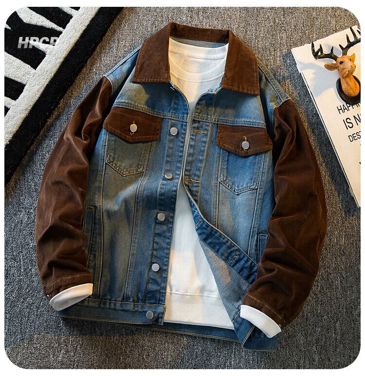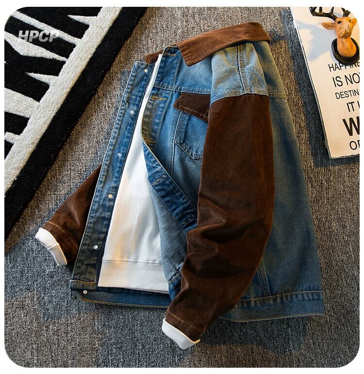 Hengpai トレンディなメンズ レトロ コーデュロイ スプライシング デニム ジャケット アメリカン ハイエンド ハンサム ジャケット メンズ 春と秋のスタイル スプリング 春物 オータム 秋物 3381956434379528