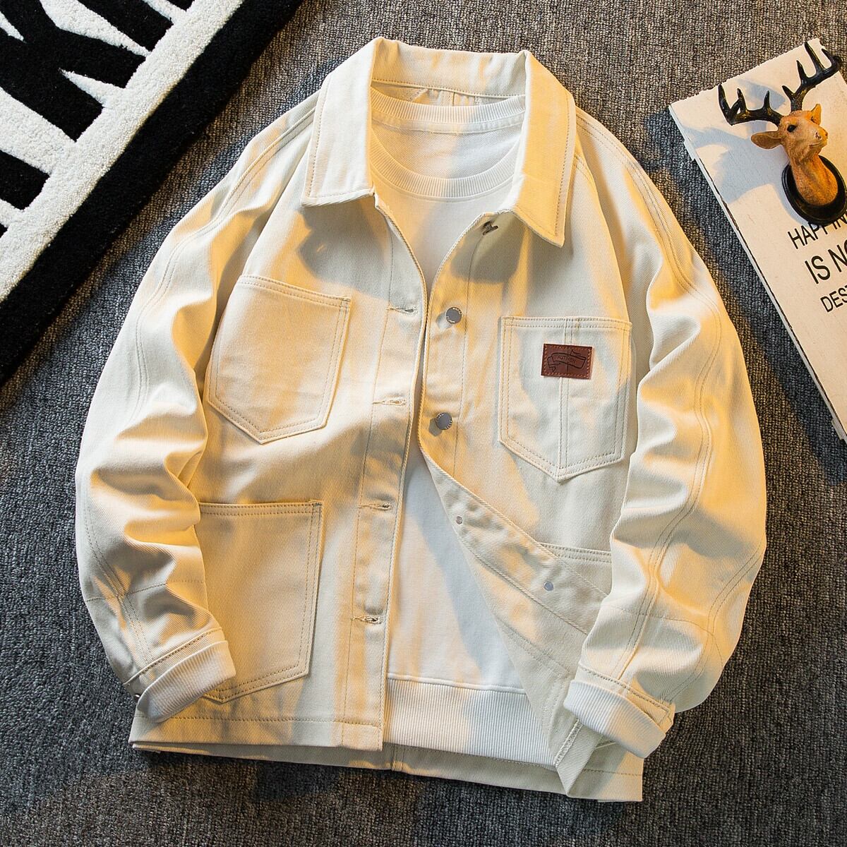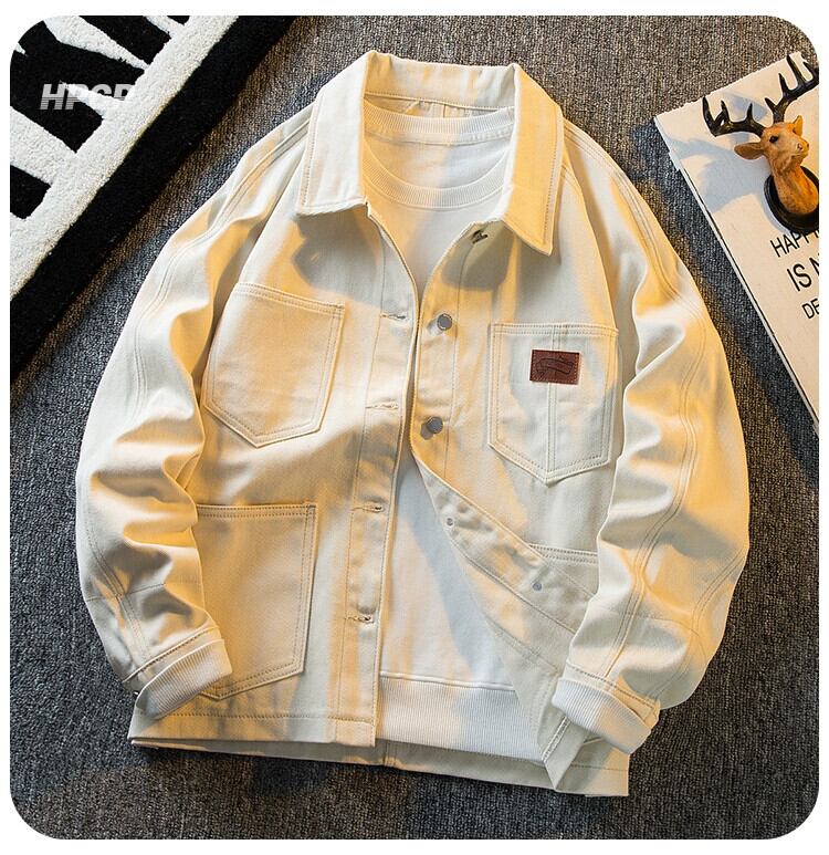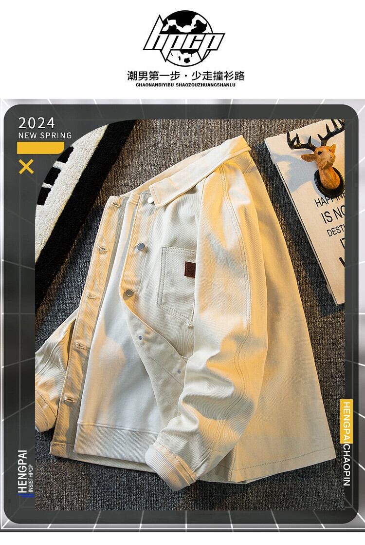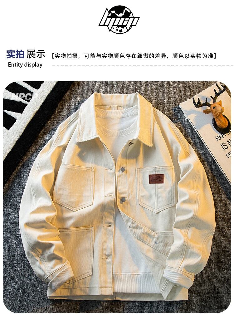 横型トレンディアメリカンレトロデニムワークシャツジャケットメンズ春秋カジュアルラペルハンティングジャケットトップ スプリング 春物 オータム 秋物 3381975232020488