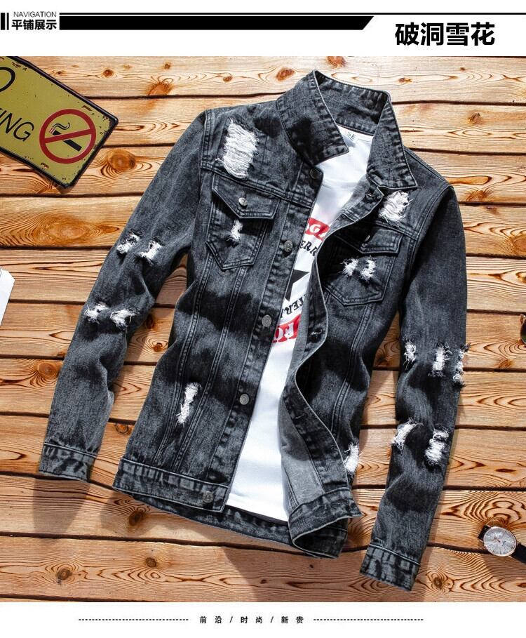 春のリップドデニムジャケットメンズスタイルスリムカジュアルトップ春と秋のジャケット服多用途のトレンディな紳士服 スプリング 春物 オータム 秋物 3381939561020060