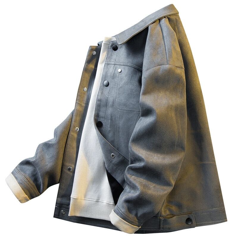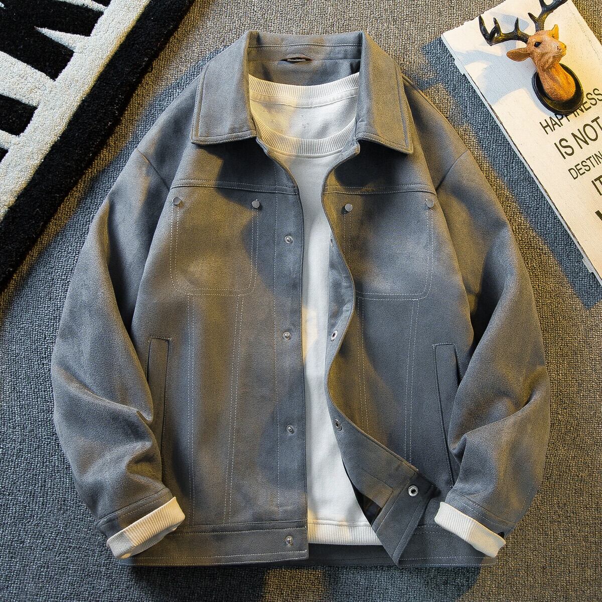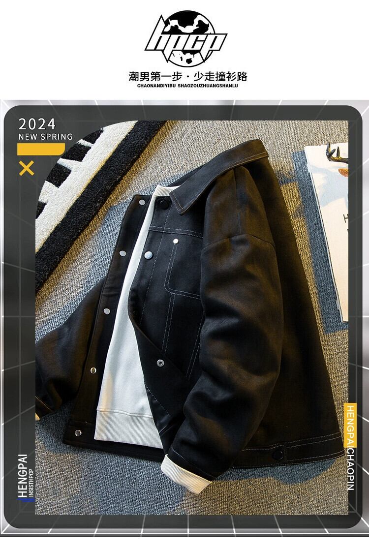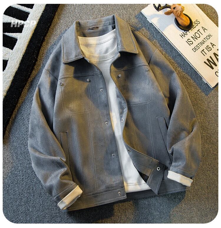 Hengpai 春ショートメンズラペルスエードジャケット 2024 新しいスリムフィットハンサムハイエンドメンズジャケット スウェード スプリング 春物 3381946508835390