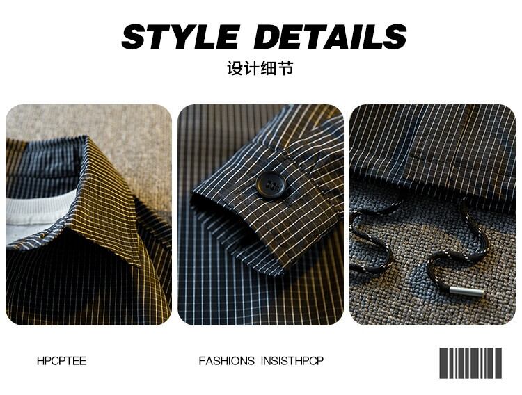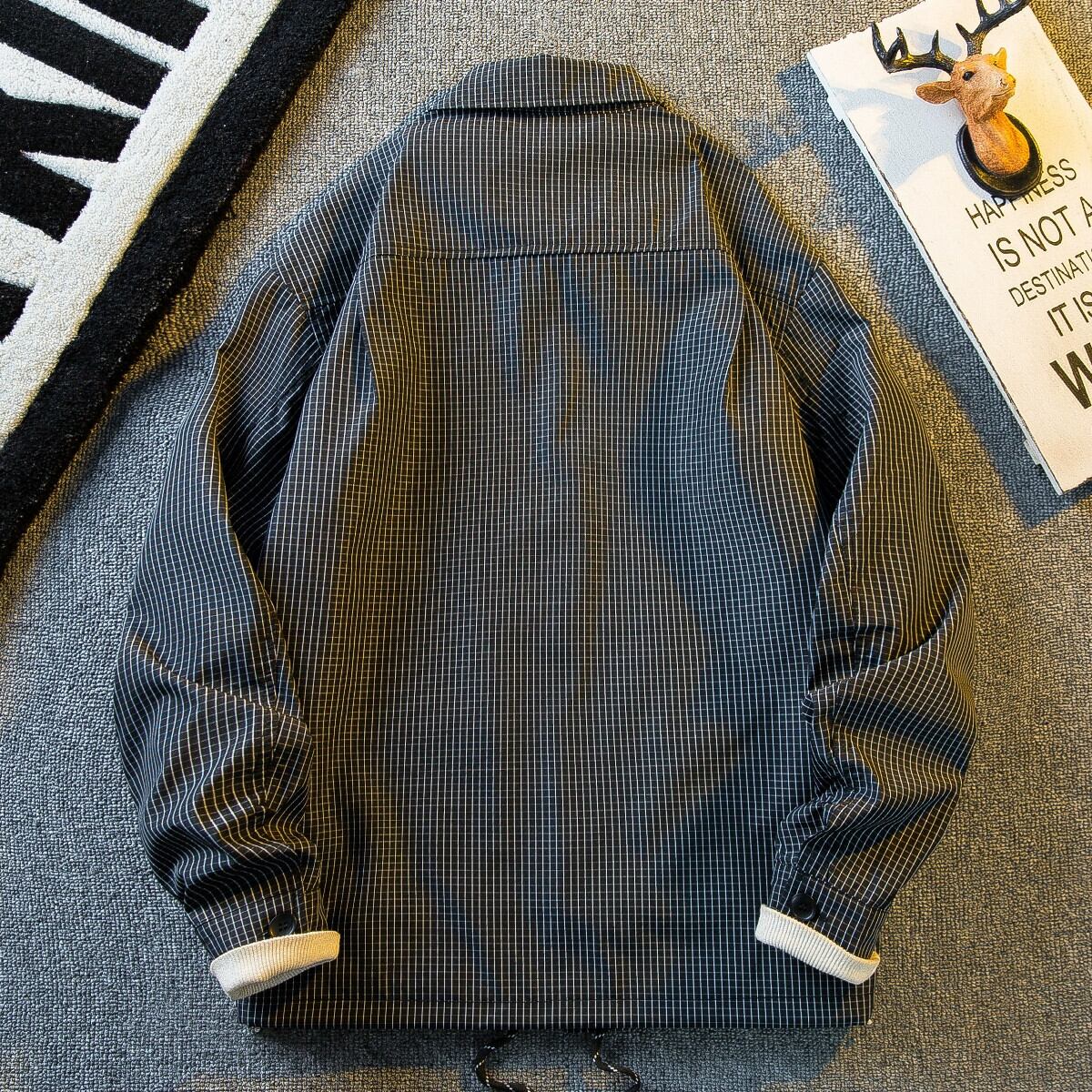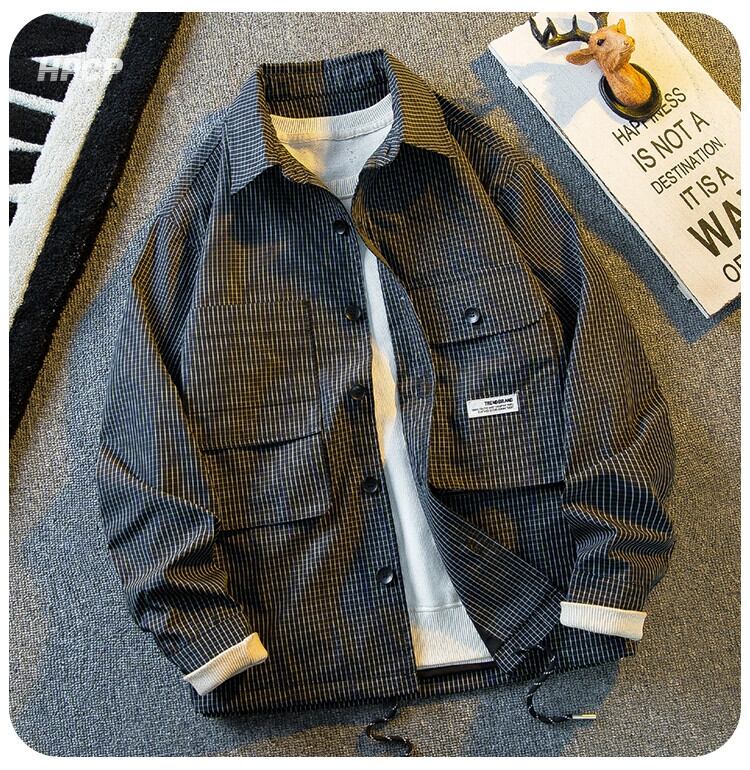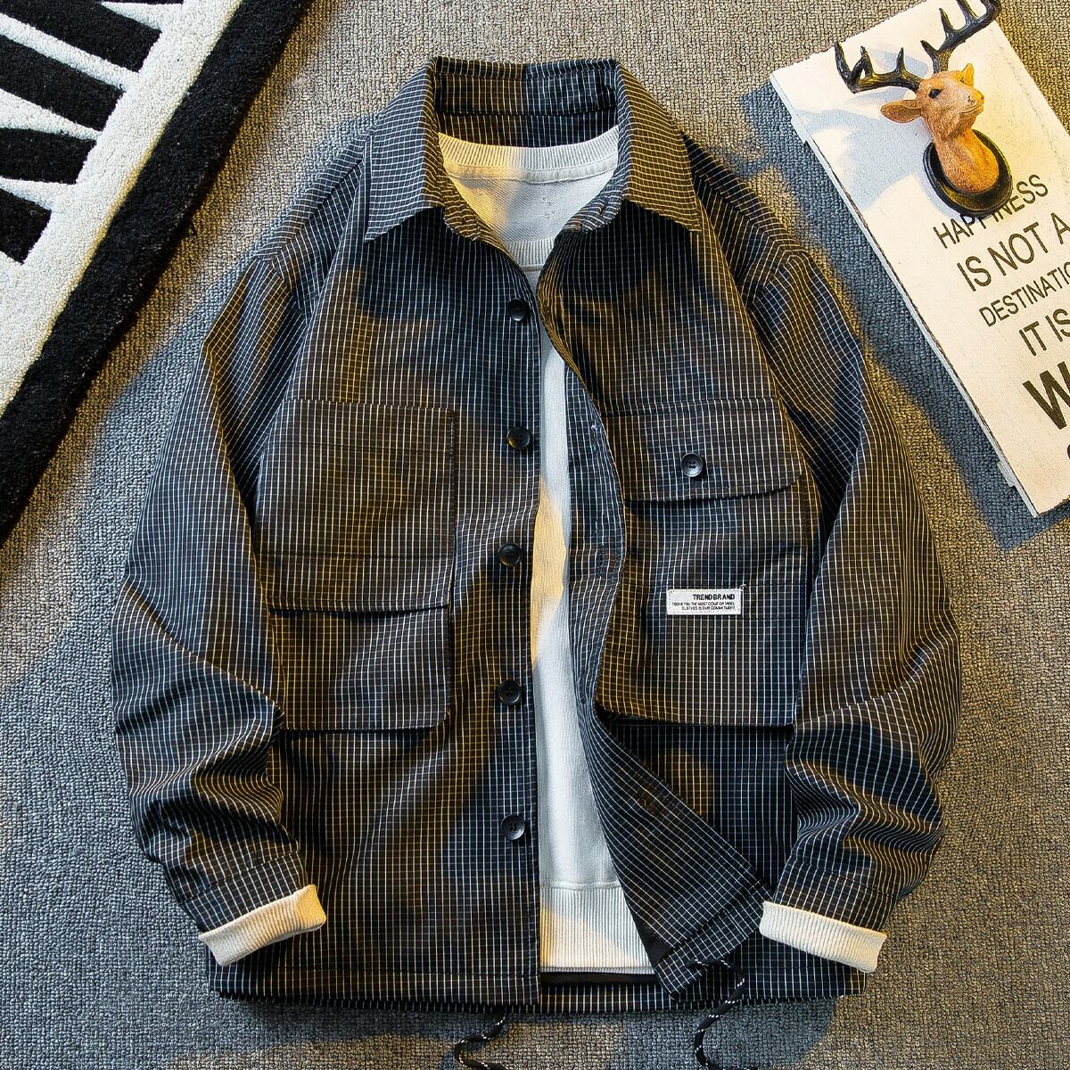 春と秋の横型シャツスタイルラペルチェック柄ワークジャケットメンズ、スリムで多用途、トレンディなメンズハンサムジャケット スプリング 春物 オータム 秋物 3381929593652543