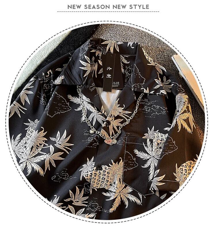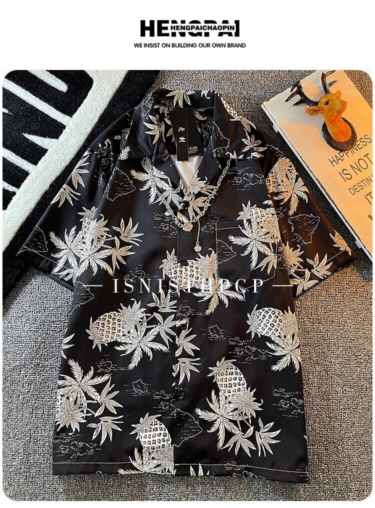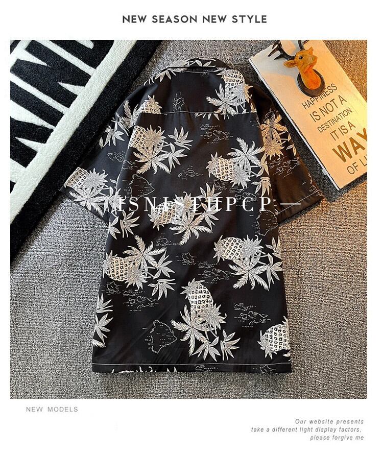 タイパイナップルプリントショートシャツメンズ夏半袖トレンディブランドキューバ襟ルーズビーチシャツジャケット男性 サマー 夏物 3381966908874220