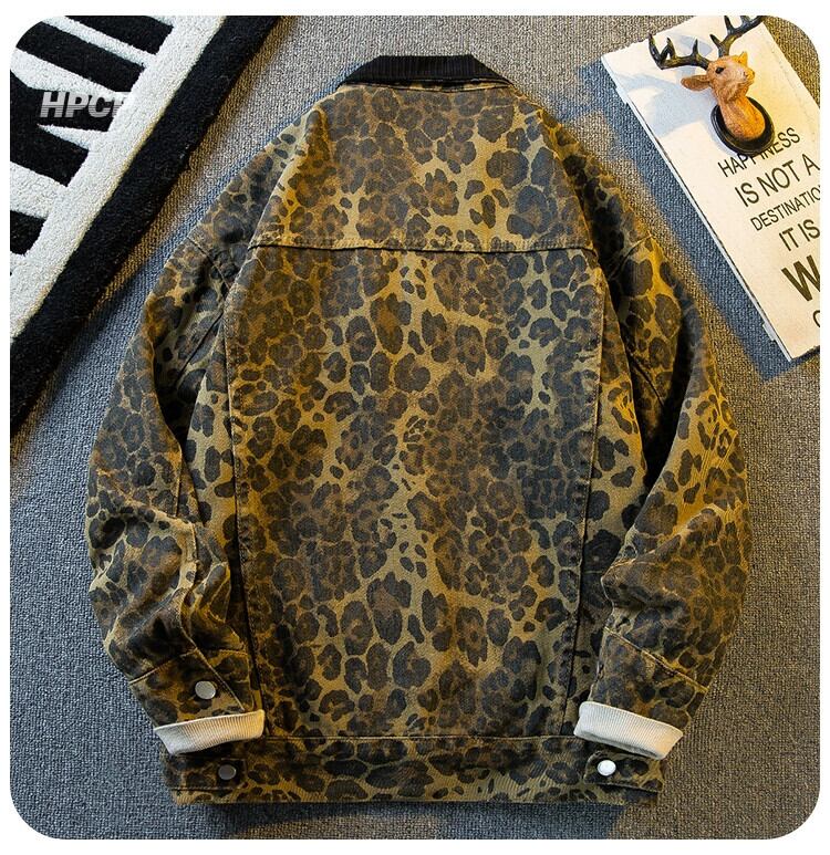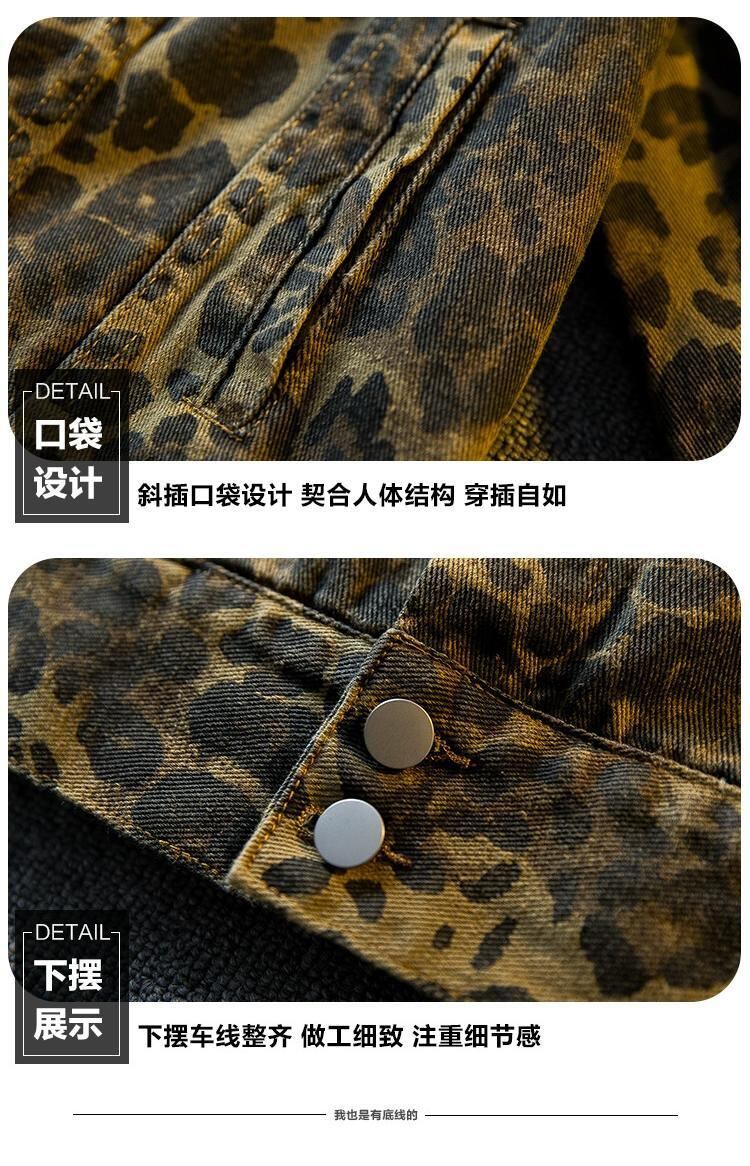 Hengpai レトロヒョウ柄デニムジャケットメンズ春と秋の新作ハンサムハイエンドラペルコントラストカジュアルジャケット春着用 スプリング 春物 オータム 秋物 3381950285208603